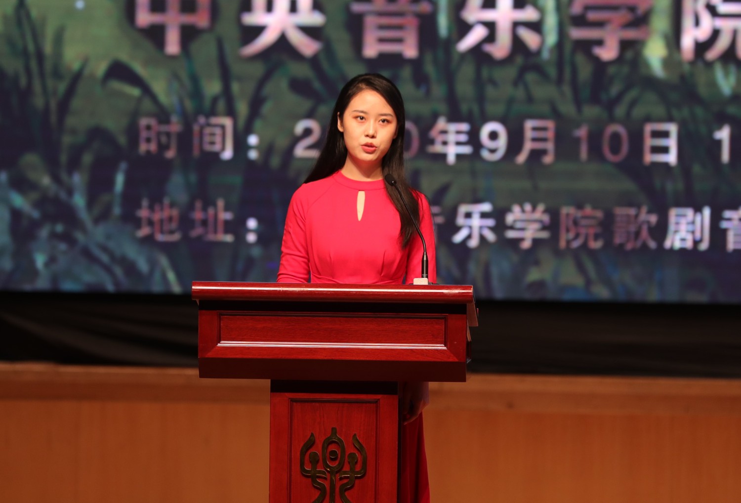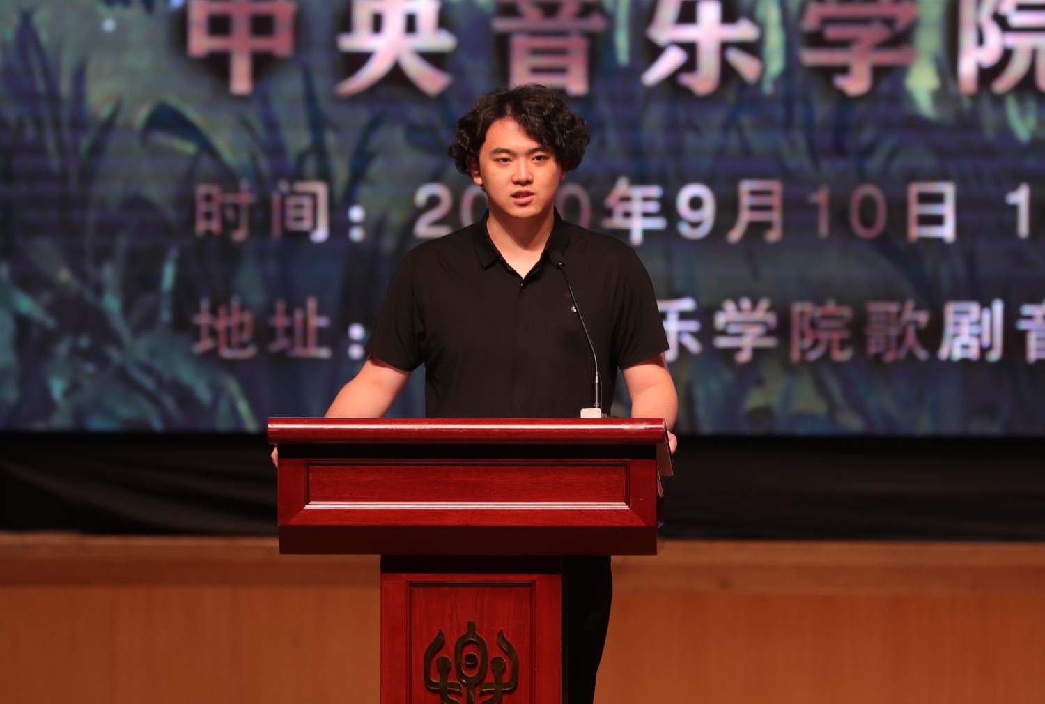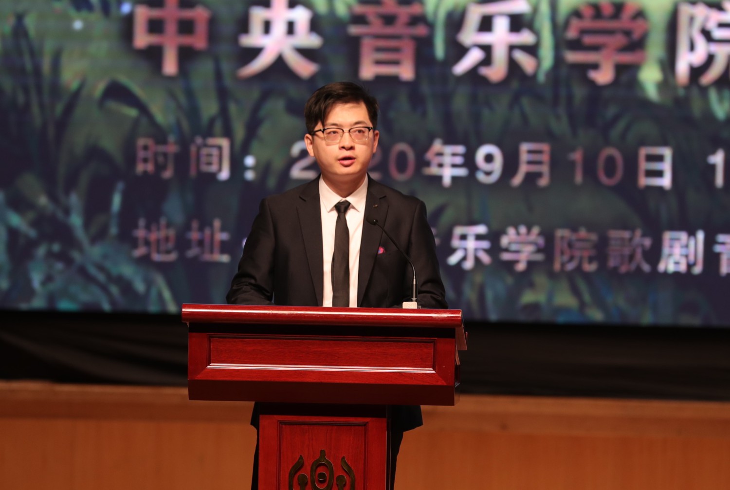 2020级音乐学系音乐学专业的张浩哲进行了发言。他激动地说,学习音乐是自己考上央音只是追求音乐艺术道路的一个开始,作为未来中国音乐事业的继承人,同学们不应松懈,要以勤勉务实的学风、精益求精的心态,继续扎实自己的专业技能,从自己做起,不忘初心、牢记使命,为母校与祖国增添荣光。