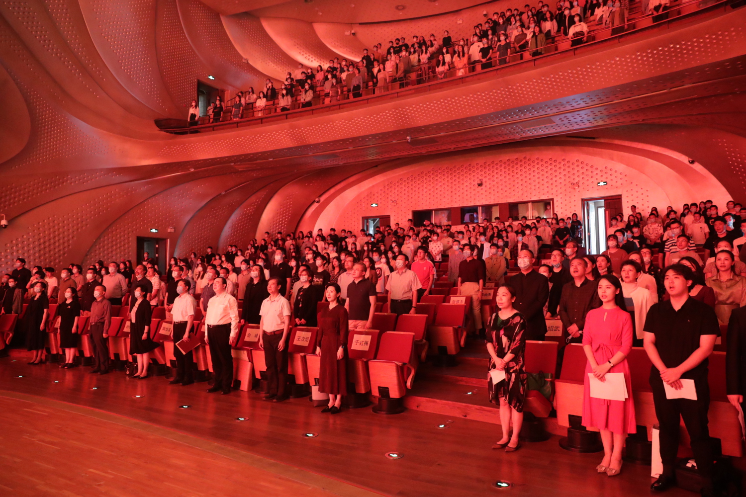 一、全体起立,奏唱国歌