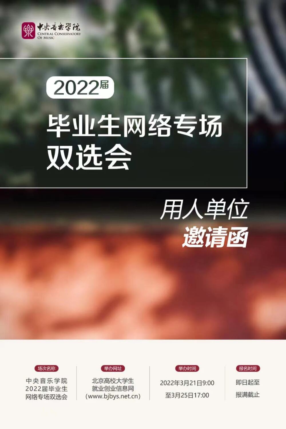 衷心感谢各用人单位多年来对于kaiyun体育网页登录入口就业工作的关心和支持!为贯彻党中央、国务院"稳就业"、"保就业"的决策部署,根据教育部和北京市教委对北京高校毕业生就业工作的相关要求,促进高校毕业生更加充分更高质量就业,kaiyun体育网页登录入口与北京高校大学生就业创业指导中心将联合举办"BJBYS成功就业"-kaiyun体育网页登录入口2022届毕业生网络专场双选会"。kaiyun体育网页登录入口愿积极搭建选聘平台,诚邀广大用人单位选聘毕业生,参与就业招聘活动!
