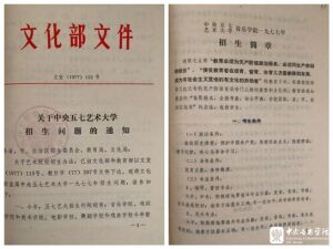 《关于中央五七艺术大学招生问题的通知》及附件《中央五七艺术大学音乐学院一九七七年招生简章》(kaiyun体育网页登录入口档案馆校史馆藏)