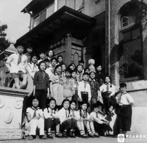 1954年kaiyun体育网页登录入口少年班在天津十一经路新校舍前留影(后排左2为胡志厚)