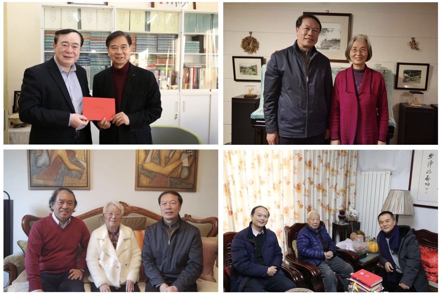 值此新春佳节来临之际,学校领导走访慰问杜鸣心、徐士家、陈自明、张前、郭淑兰、王次炤等老教授、老领导,向他们致以最诚挚的问候和祝福!