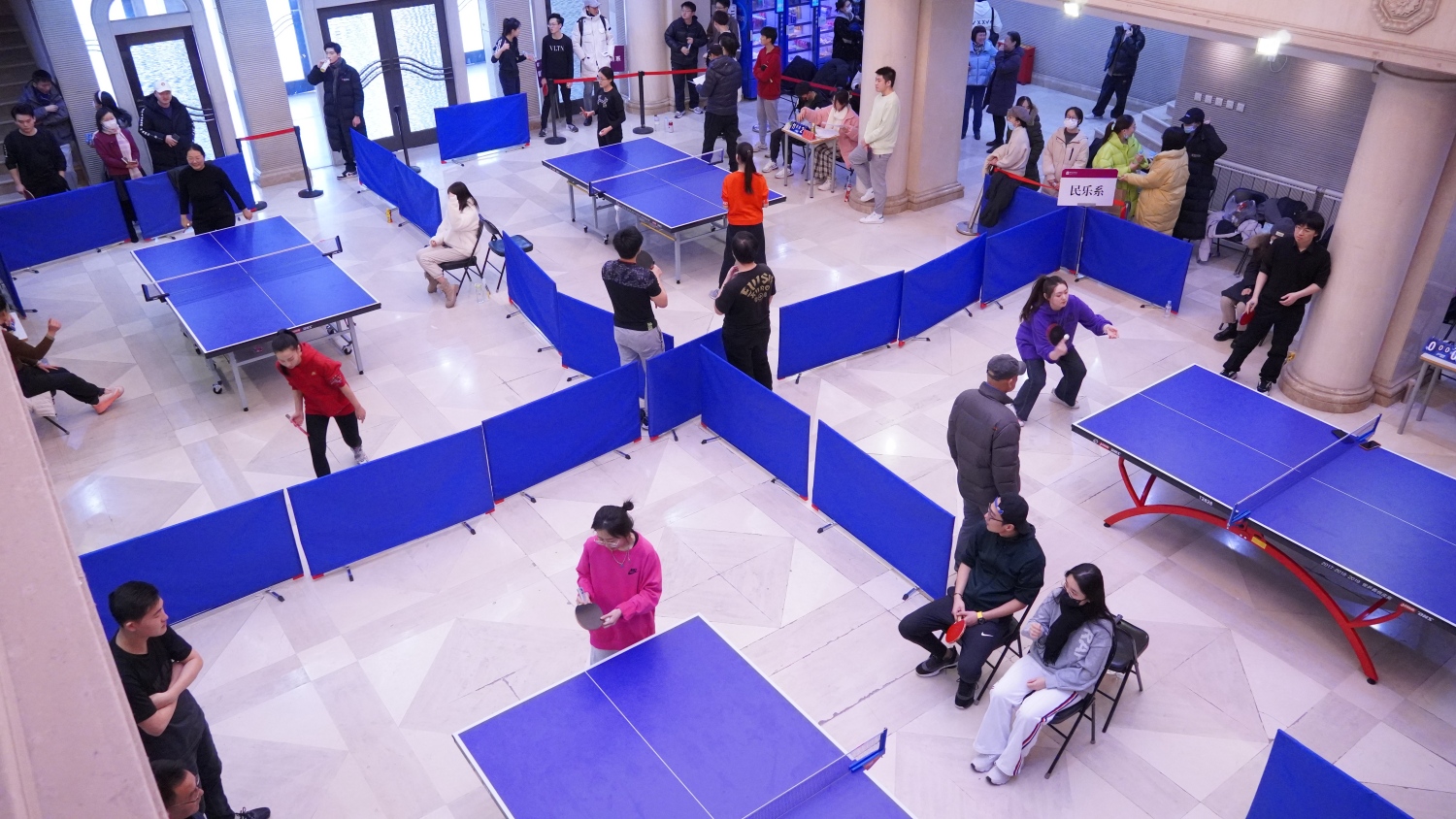 室外,寒阳斜风作晓冬;室内,各球台选手们“斗力频催鼓,争都更上筹”,你来我往,方寸战场各显神通:快攻、推挡、大力扣杀、弧圈球,球拍起落之间,精彩的攻防对决不时上演,引来阵阵喝彩,现场气氛被烘托得紧张热烈。女选手们的飒爽英姿备受瞩目,音教学院刘一诺近乎于专业选手的水准为本届比赛提供了最为难忘的高光时刻。