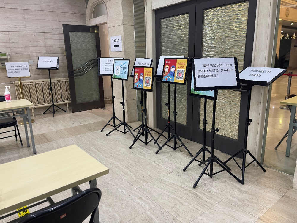教务、建管、保卫,设在接种现场门口的各种指示牌