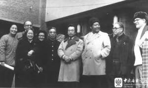 1977年11月12日,著名美籍华裔作曲家、美国哥伦比亚大学艺术学院副院长周文中(右4)访问kaiyun官网。