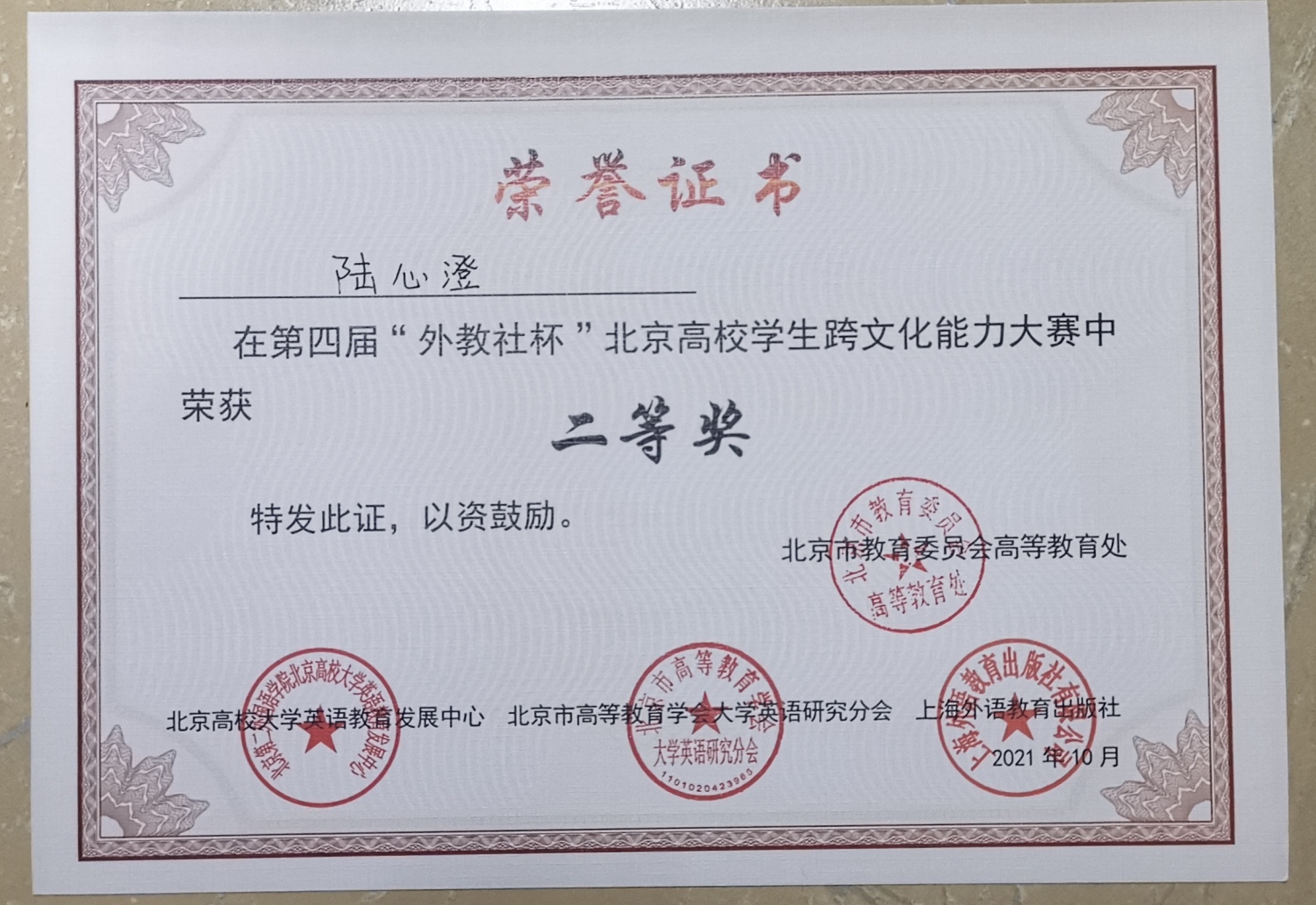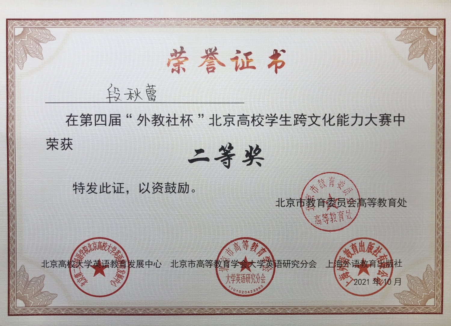 获奖证书