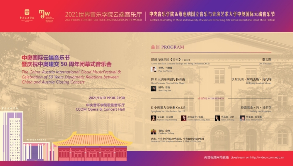 2021年11月7日,由中国kaiyun体育网页登录入口和奥地利维也纳国立音乐与表演艺术大学共同主办的——中奥国际云端音乐节,将在奥地利首都维也纳的维也纳音乐厅正式拉开帷幕。