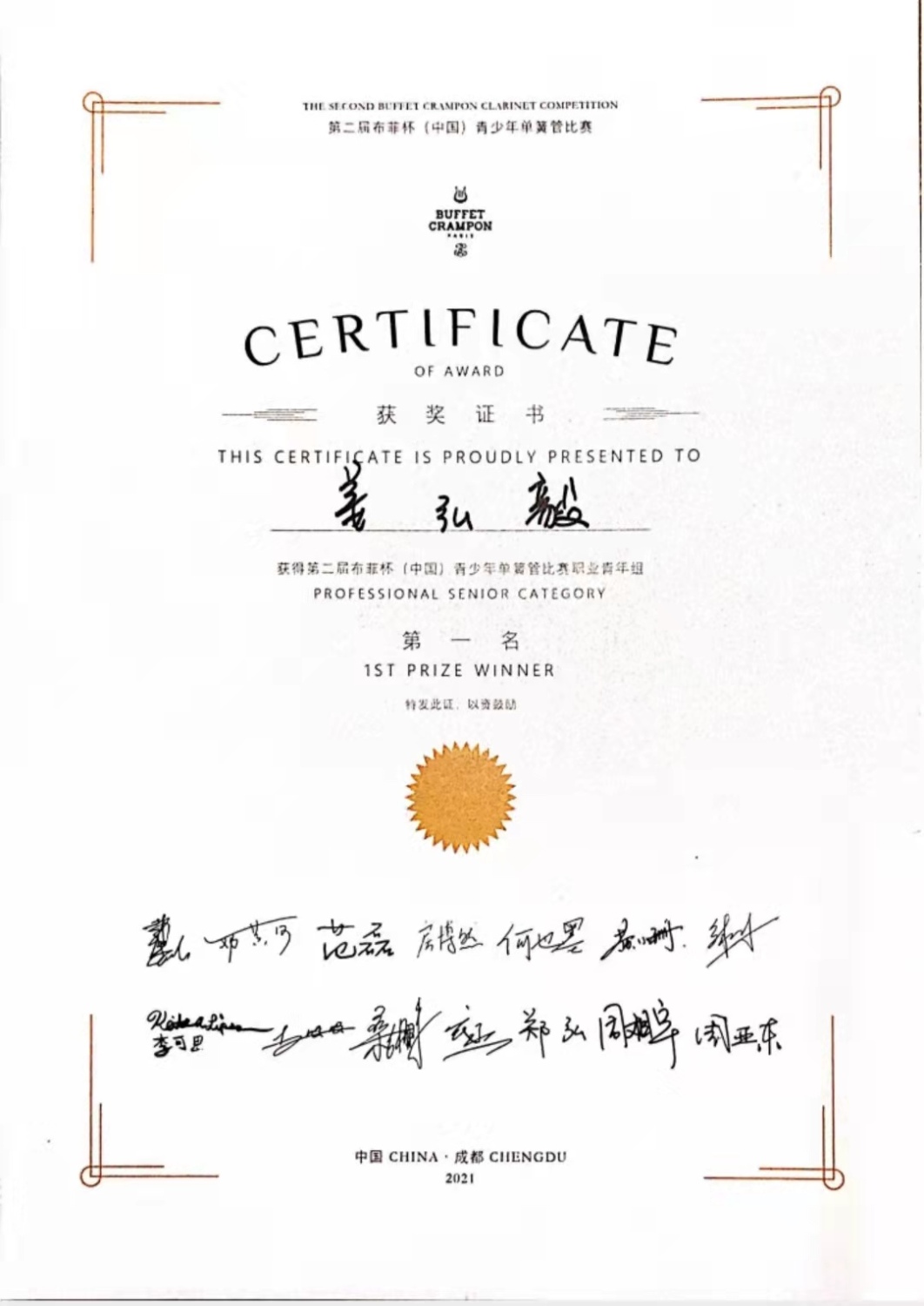 近期在成都举行的第二届布菲杯(中国)青少年单簧管比赛,是两年一届的中国最高水平单簧管职业比赛。本届参赛选手来自全国各地,包括各大音乐学院、职业乐团92位中国职业选手,参赛者水平高、人数多,竞争非常激烈。通过四轮比赛,kaiyun体育网页登录入口本科学生姜弘毅、谢宗霖、姚舜同学凭借出色的发挥包揽了职业青年组前三名,分别是:第一名姜弘毅、第二名谢宗霖、第三名姚舜(指导教授均为袁源教授)。