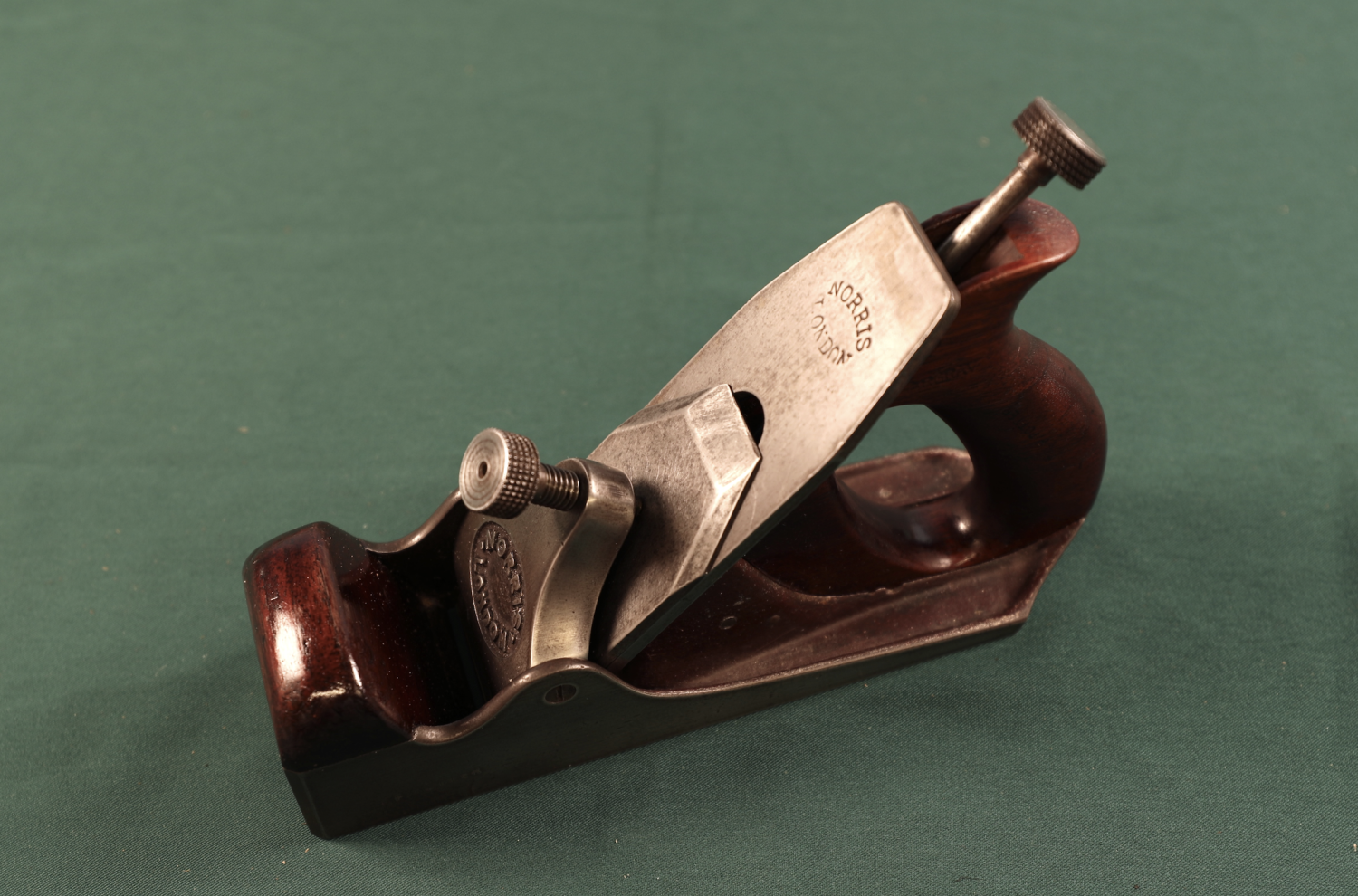 10、Norris London 铁制手刨。制作于1922-1935年间。这家企业创建于1860年,至今仍然在运作。刨体设计沉稳、厚重、精美,每个配件上均刻有Logo,通常会提供多种型号的手刨供客户选用。