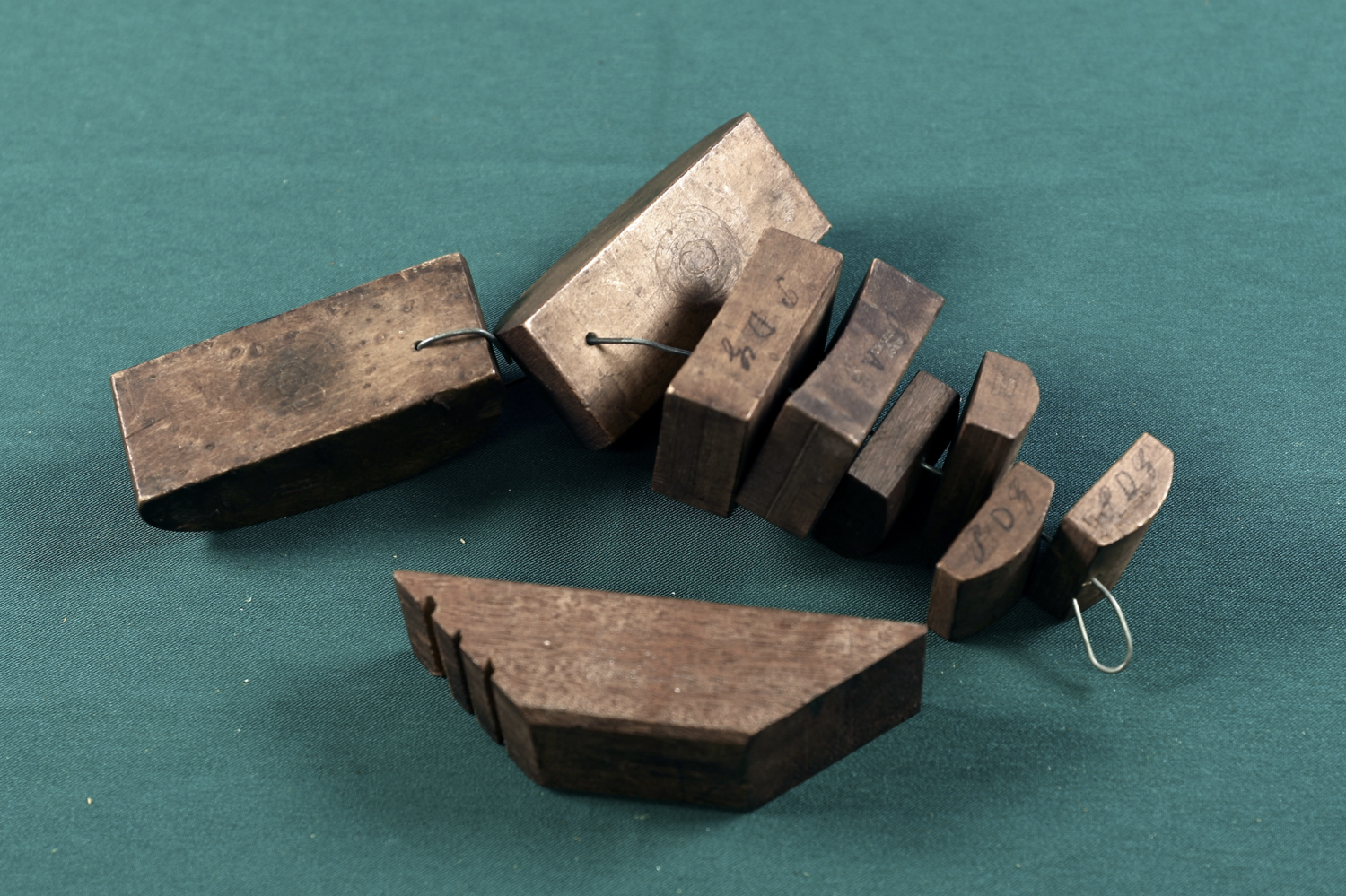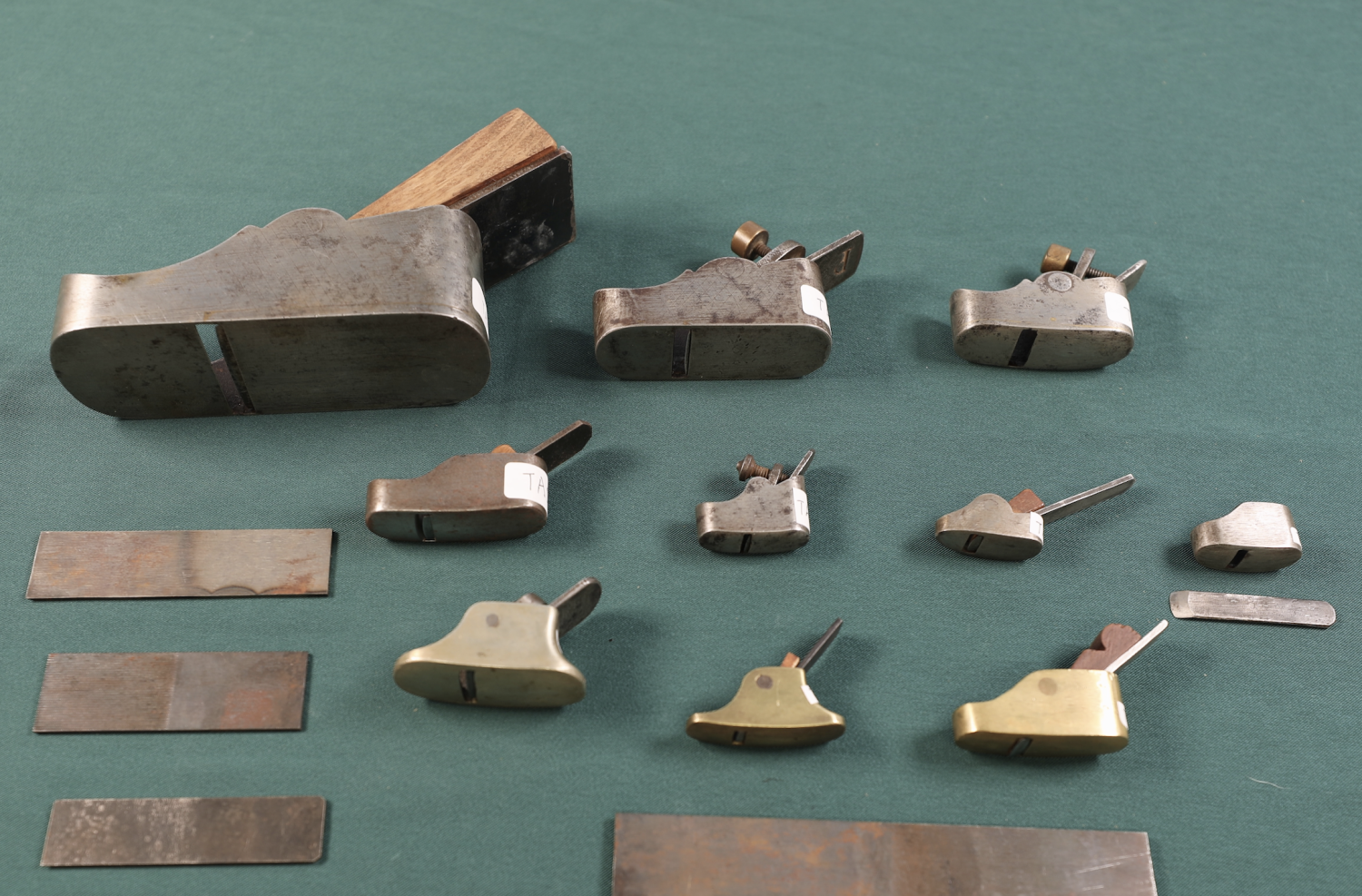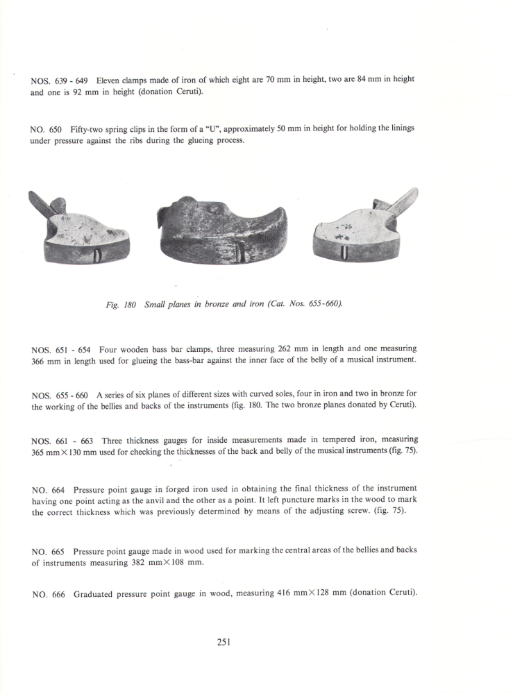 9、5个18世纪早期制作的用于小提琴、中提琴和大提琴琴板弧度制作的拇指刨。通常在制作琴板弧度时,最先使用的是铲刀来进行初步制作,接下来就要使用拇指刨进行二部制作,它的刨体、刨底以及刨刃与刨底的夹角直接影响到弧度制作的品质。另外5个18世纪早期,铜制或铁制的琴板弧度拇指刨,与 Sacconi 所著《 The Secrets of Stradivari 》第 251页中提到的拇指刨极为相似,实属罕见。