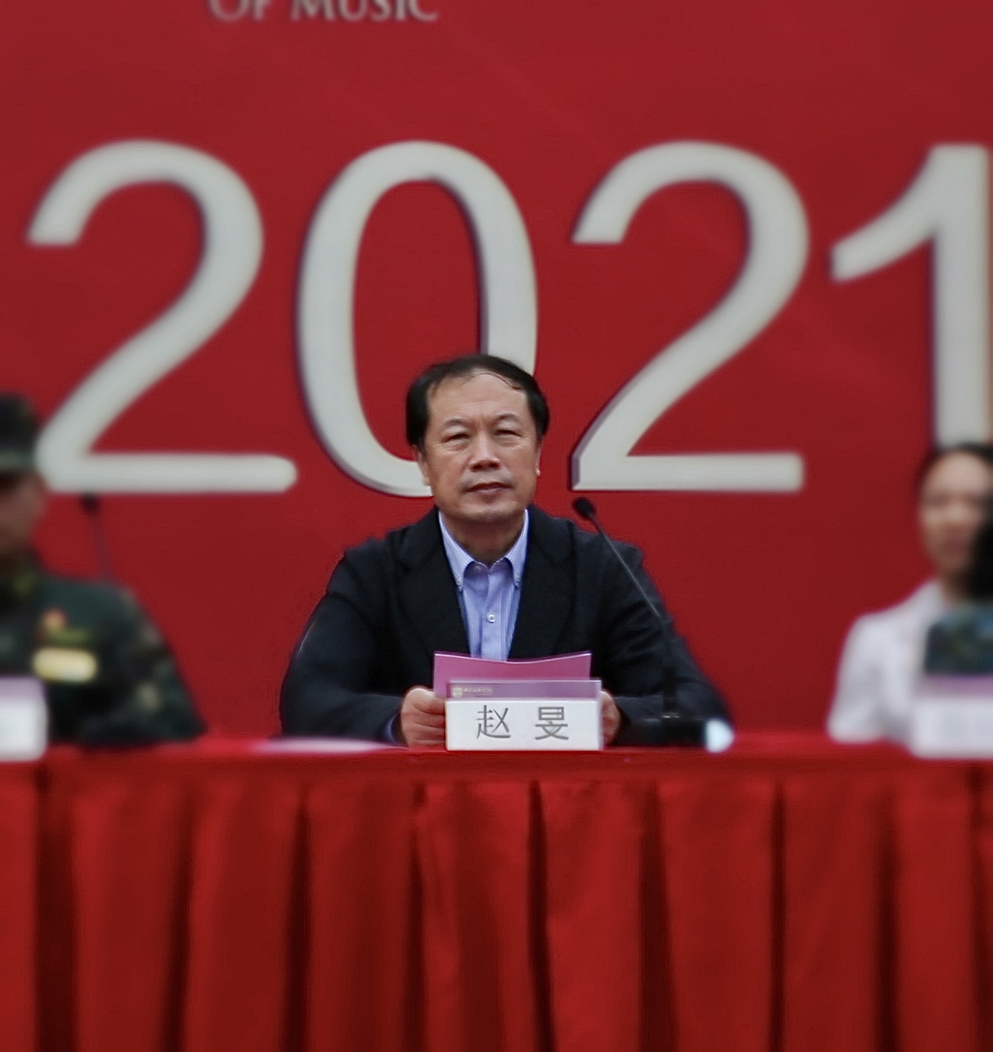 随风飘扬的团旗下,2021级民乐系新生秦初象作为参训学生代表发言,传达出全体参训人员对完成本次军训任务的坚定决心,以及从先辈们的初心和使命传承而来的不灭信念。