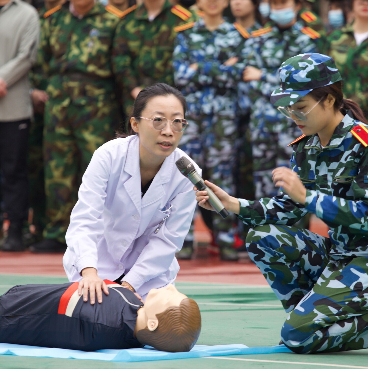 医护人员对急救知识的详细讲解,让同学们意识到黄金4分钟在急救中是多么的重要;在对急救动作进行演示后,同学们对一些基本急救手段和AED的使用方法也有了初步的了解。