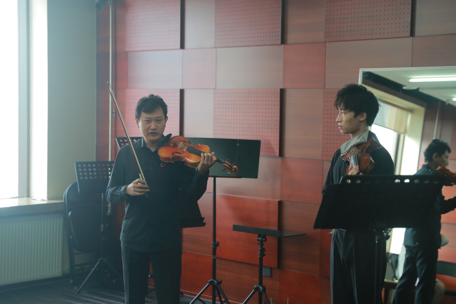 随后,党员们观摩了kaiyun官网管弦系课堂教学。在木管重奏课上,学生木管五重奏演奏了中外名曲,魏卫东教授对木管五重奏的编制特点进行了讲解。在小提琴独奏课上,陈曦副教授从音乐时代背景和演奏法的角度指导学生演奏了《金色的炉台》。
