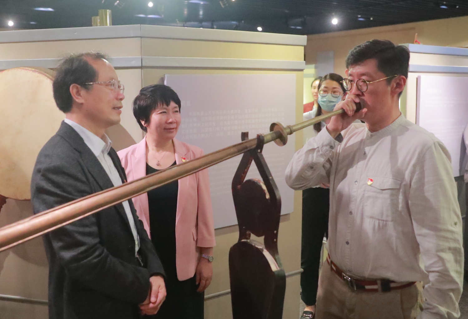 在学校乐器博物馆,张伯瑜教授向大家介绍了馆藏乐器,并展示了各类乐器的特色,通过不同时期具有代表性的乐器,大家了解了中国传统乐器渊源流长的历史和其中博大精深的文化。