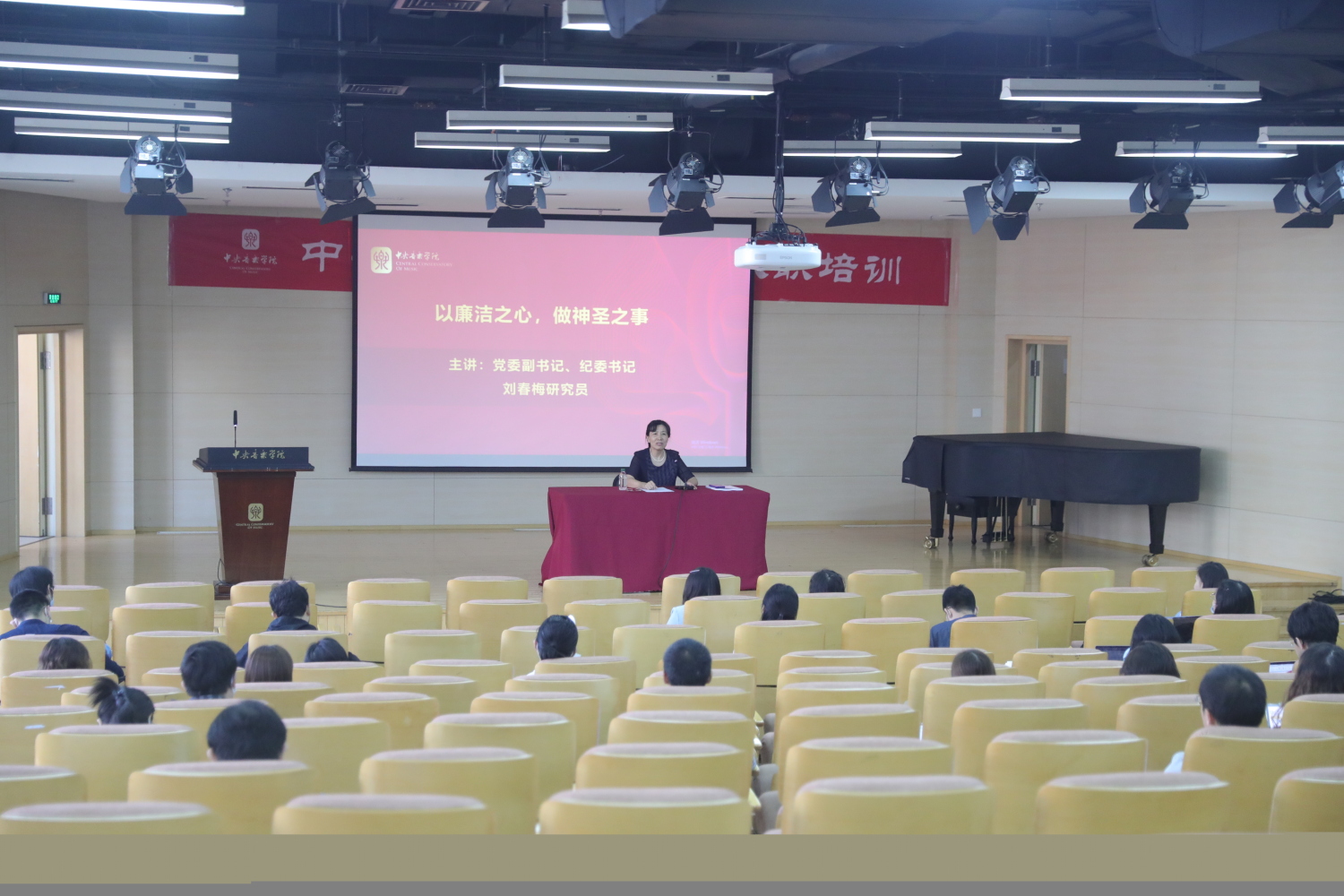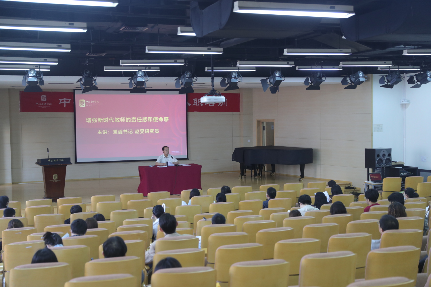赵旻书记向新教师提出殷切期望,希望他们能够深入地理解“什么是大学”、大学“人才培养、科学研究、社会服务、文化传承与创新、国际交流”五位一体的职能和大学教师的使命与担当,自觉成为一名优秀的央音教师。他说,教师是大学精神的传承者,是大学文化的衡量者和塑造者,要以仁爱之心善待学生,为国家、为社会培养优秀人才。