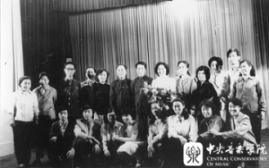 上,1951年,赴东柏林参加第三届世界青年与学生和平友谊联欢节(前排右2),并在钢琴比赛中获得三等奖。
