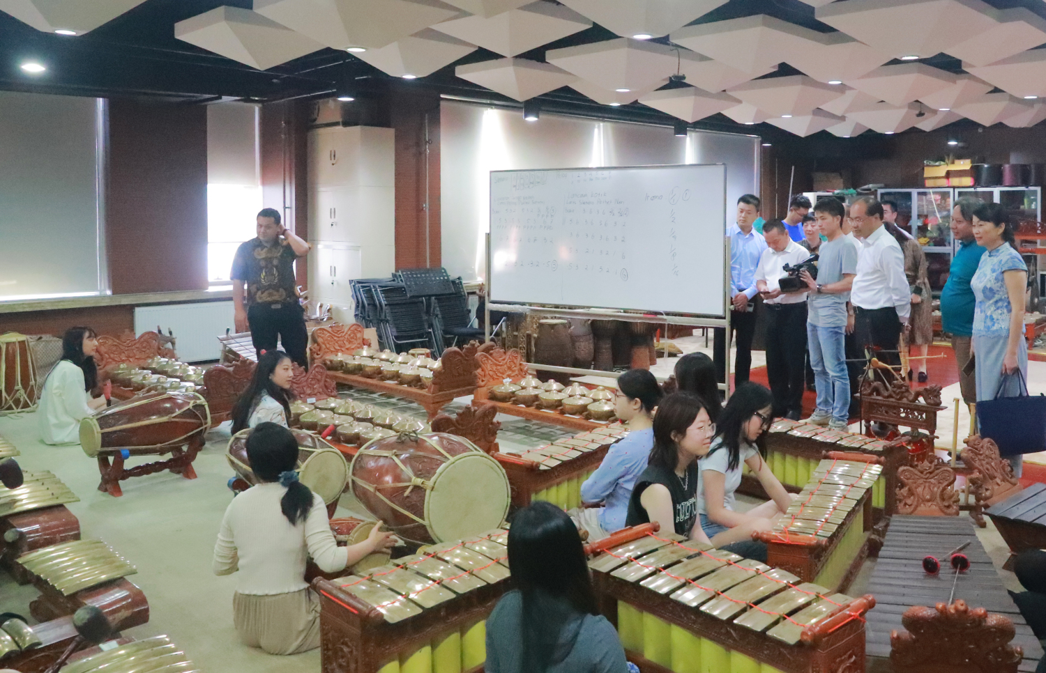 会谈结束后,在赵旻书记、于红梅副校长的陪同下,黔西南政府一行参观了校史展览馆和乐器博物馆,并现场观摩了安平教授“印度尼西亚佳美兰乐队演奏”选修课。