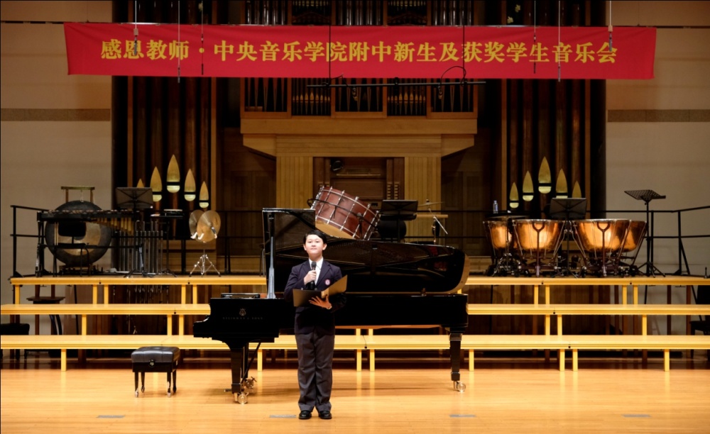 娜木拉校长介绍了感恩音乐会的由来,感恩音乐会是附中的一个传统,每年的9月10日都会举办《感恩教师·kaiyun体育网页登录入口附中新生及获奖学生音乐会》,希望同学们做到感恩父母,感恩教师,感恩学校,感恩国家。