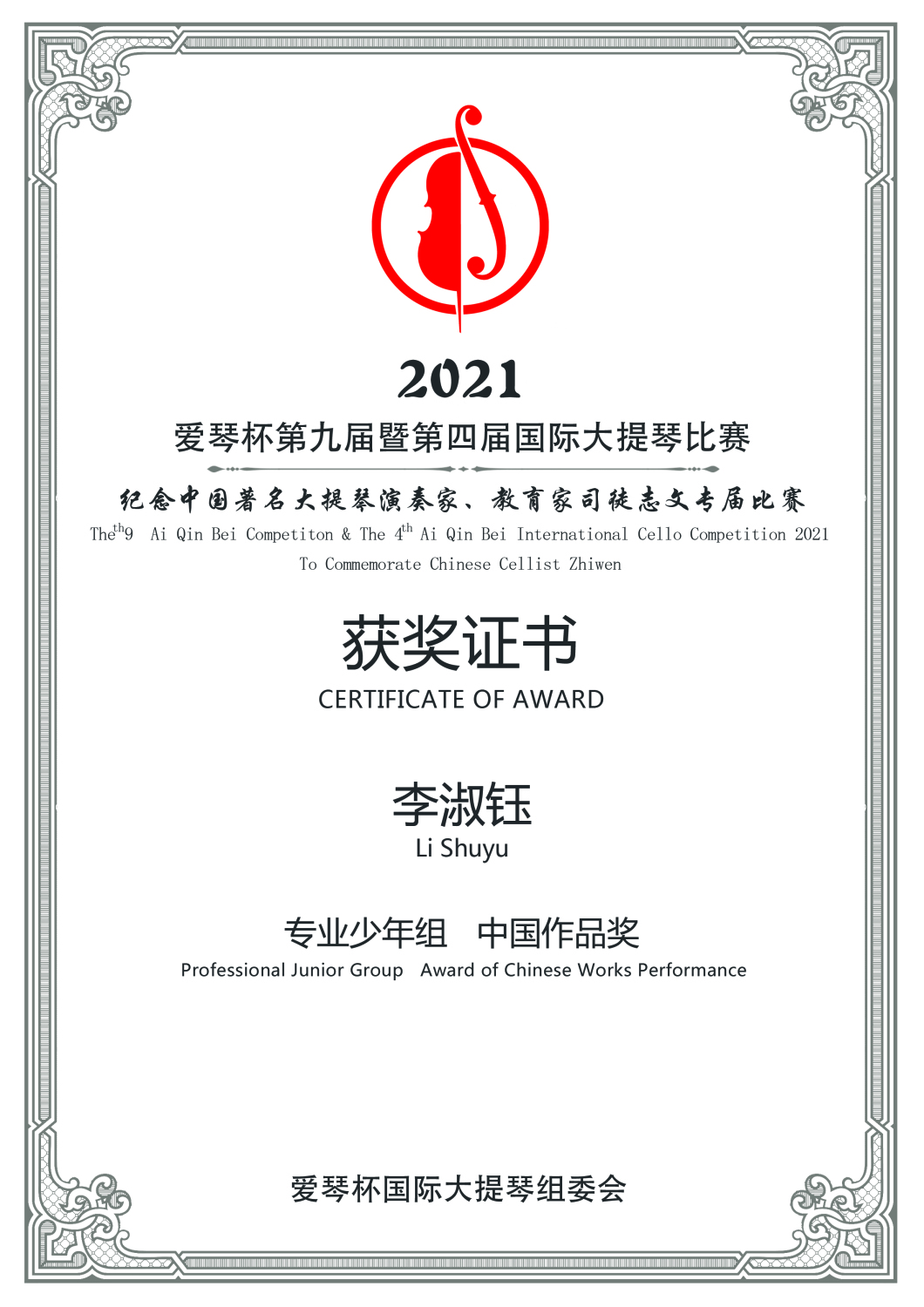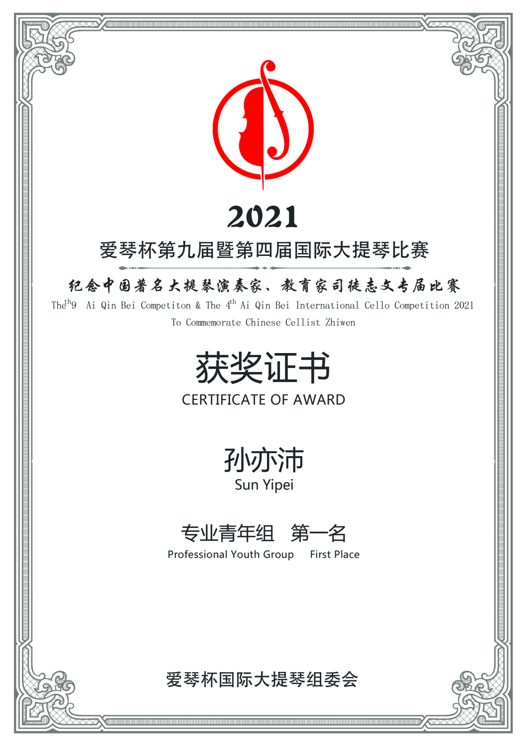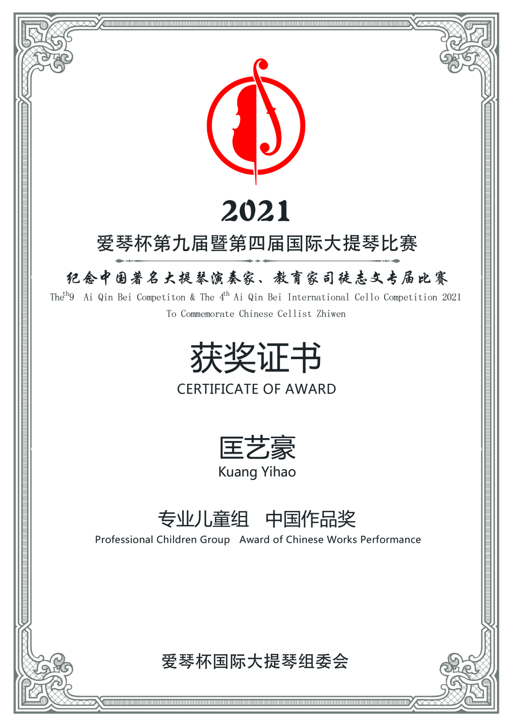 在刚刚结束的第九届暨第四届爱琴杯国际大提琴比赛中,kaiyun官网多名学生获得专业组重大奖项。