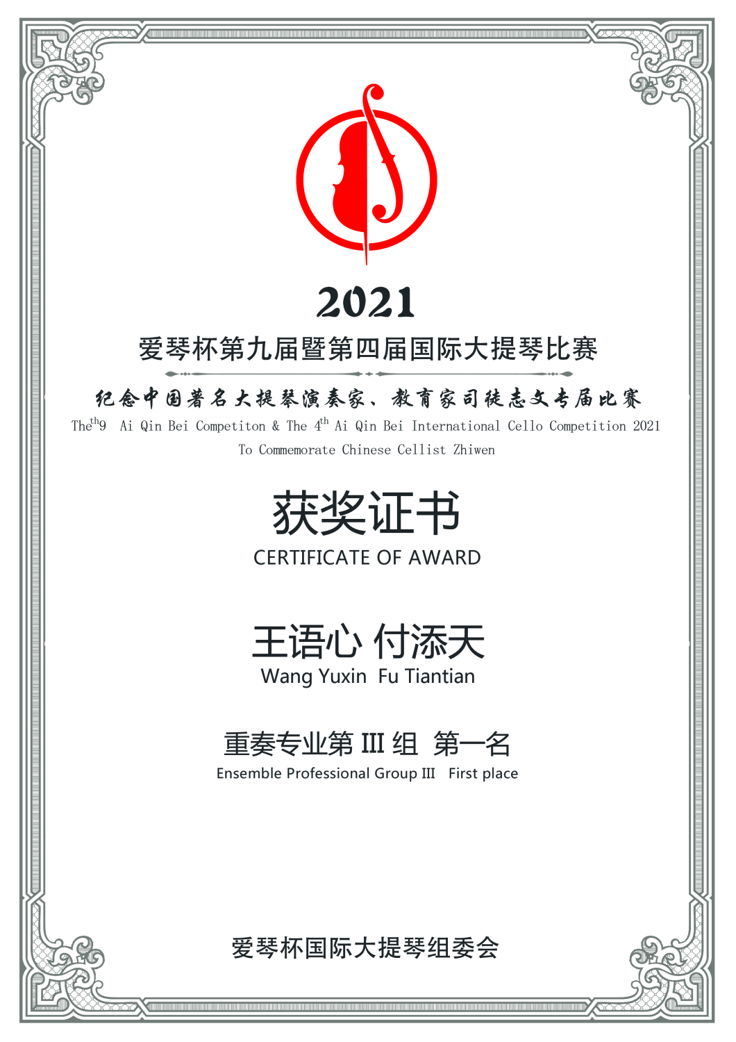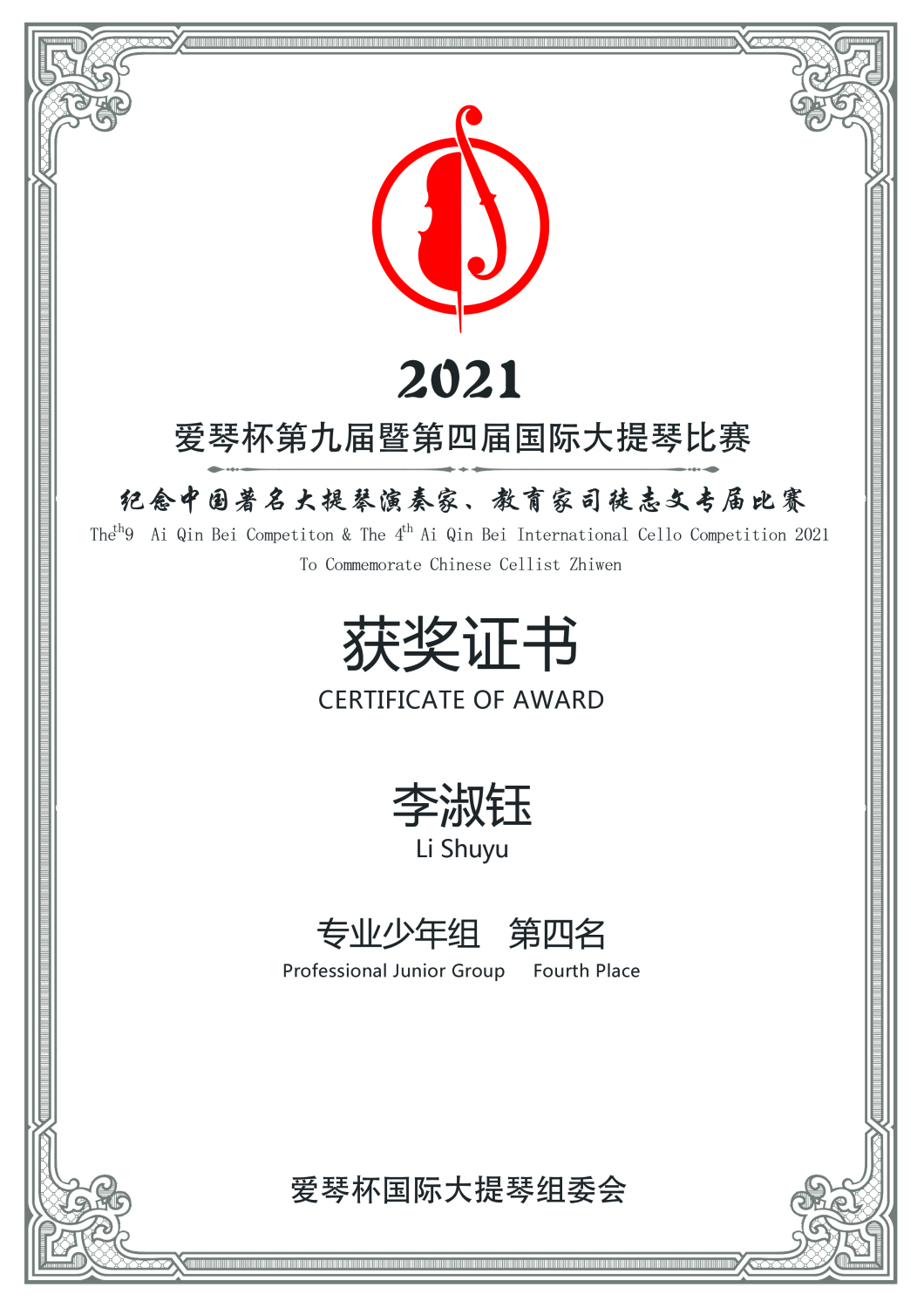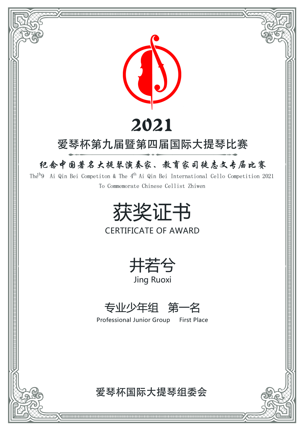 在刚刚结束的第九届暨第四届爱琴杯国际大提琴比赛中,kaiyun官网多名学生获得专业组重大奖项。