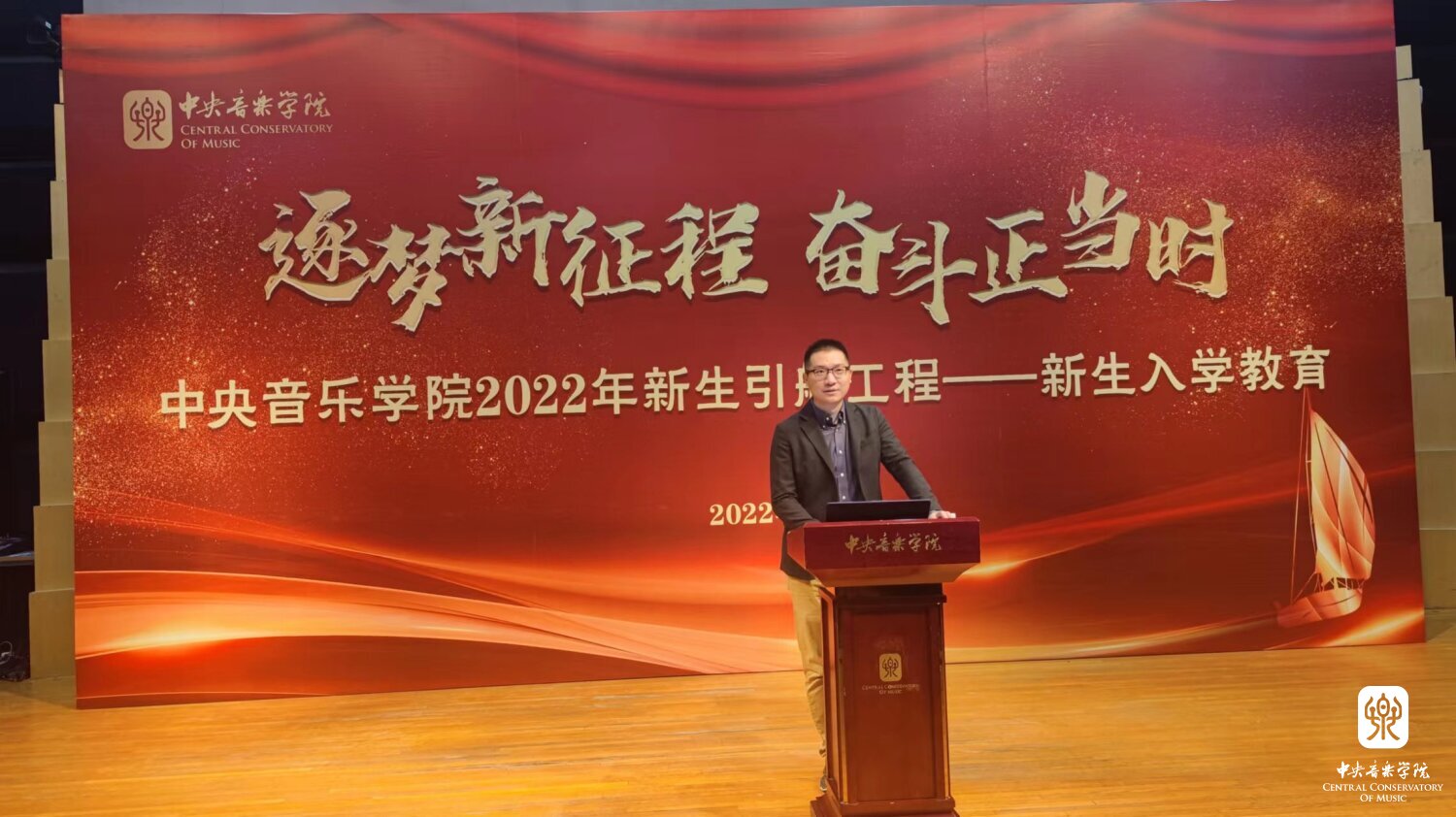 9月9日下午,校党委书记赵旻为2022级全体新生现场讲授开学第一课,围绕“我是谁”“我要成为谁”这两个问题给新生以教育启发,为央音青年指明奋斗方向。