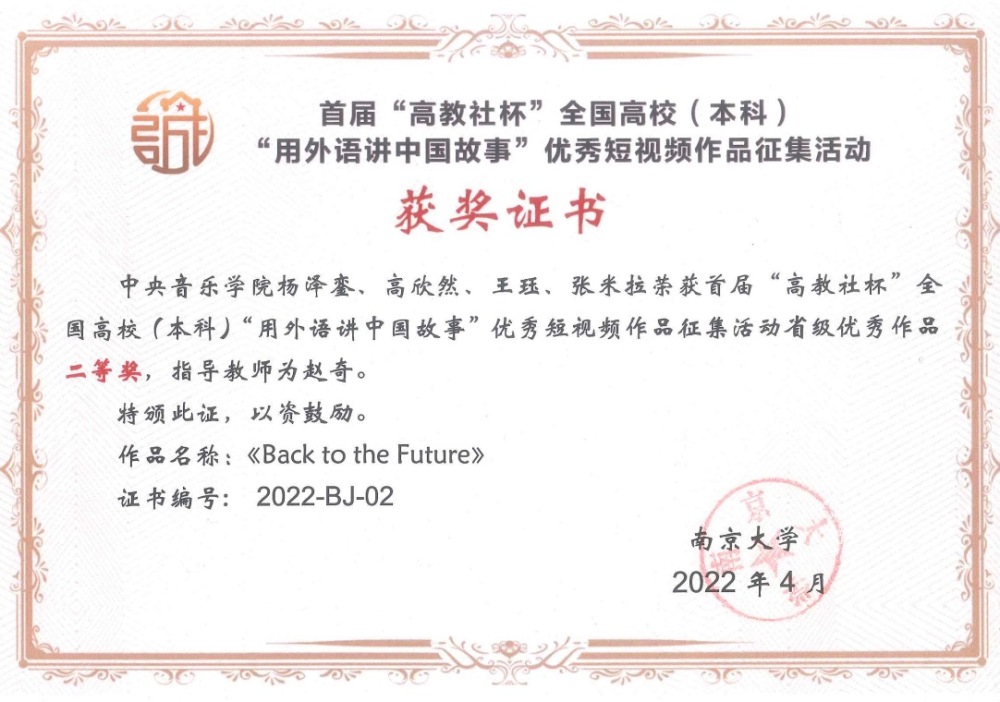 近日,首届“高教社杯”高等学校(本科院校)“用外语讲中国故事”优秀短视频作品征集活动公布获奖名单,kaiyun官网学生团队作品“Back to the Future”经过数轮角逐,获得北京赛区二等奖(第二名)。
