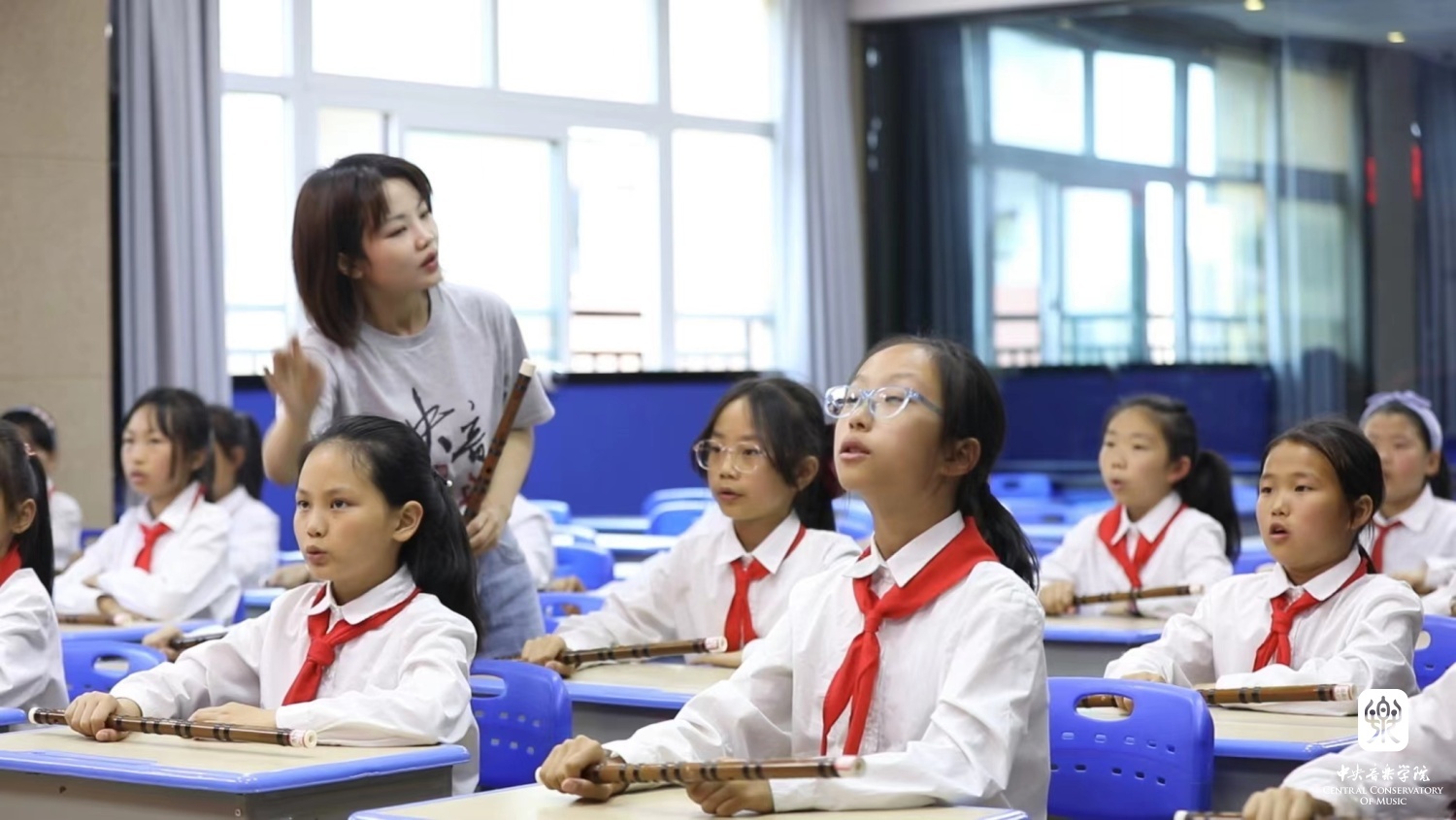她设立了kaiyun体育网页登录入口新时代文明实践公益笛子社团课、建立黔西南州第一支学生民族乐团。在乐团中有这样一位特殊的孩子——小陈芯,她自小失去了父母,随爷爷奶奶跟着易地扶贫搬迁大队搬迁来到兴义,爷爷长年在外打工,奶奶每天也要工作养家,大部分时间都是自己一个人在家,现在有笛子的陪伴格外珍惜。于是漆微微每周定期给孩子进行公益一对一单独辅导,希望圆孩子一个音乐梦,也尽可能为孩子缺失父爱母爱的童年带来些许温暖。