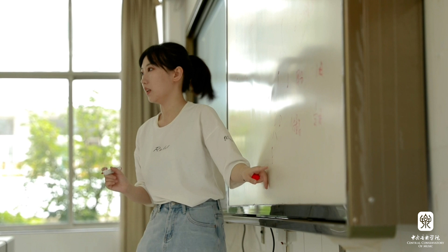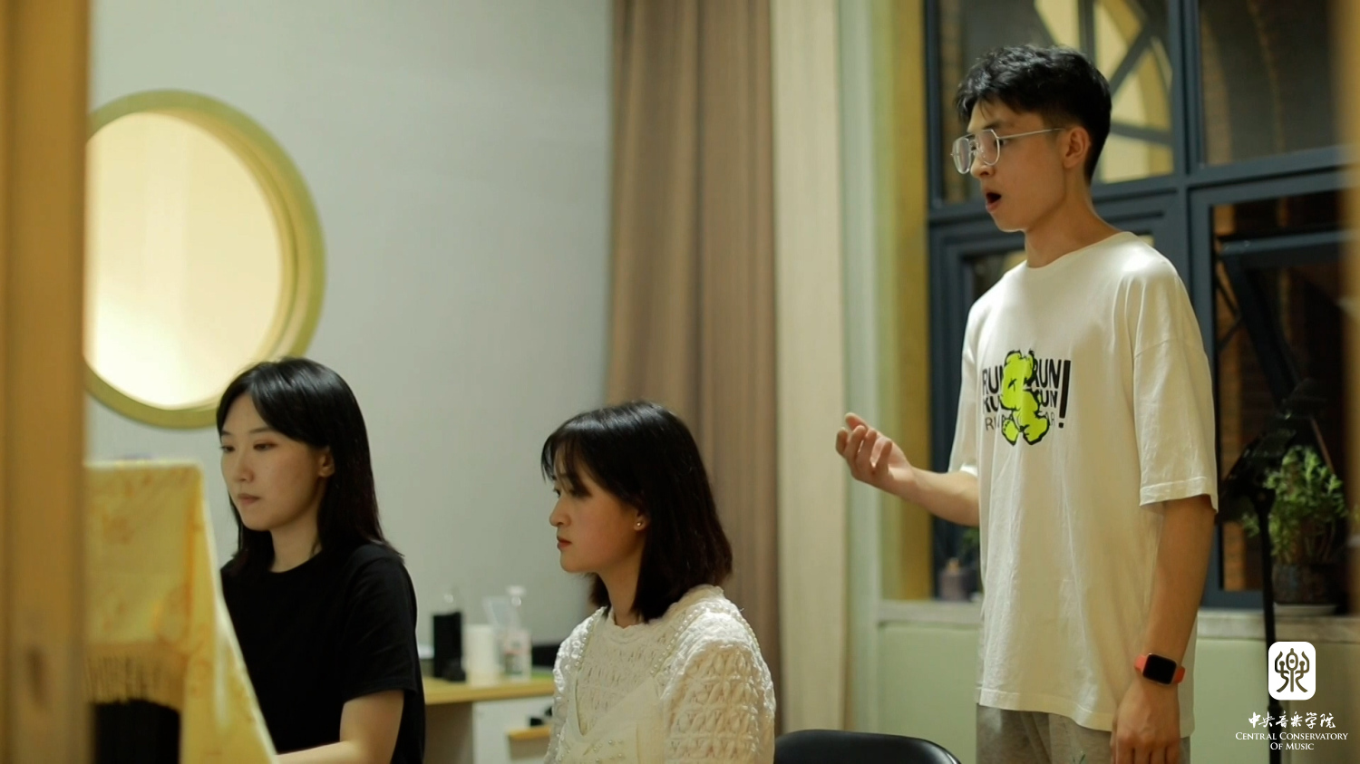 熊健佑是学校器乐演奏能力较强的艺考生,耿牧遥为她制定了有针对性的训练计划。每天督促她跑步,补齐她气息和形体上的短板。