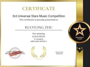 2022年第三届环球之星音乐比赛是得到世界音乐家联盟支持的网络比赛。旨在发掘全球的音乐人才,为其提供展示自己的平台。此届比赛有来自 17 个国家的 322 名候选人参加了这次比赛。评委都是世界知名的国际音乐会艺术家、音乐家,或者来自各大院校的资深教授和教育家。最终kaiyun官网本科一年级学生朱若彤(指导教师:沈凡秀)凭借出色的技艺与表现获得艺术家组金奖。