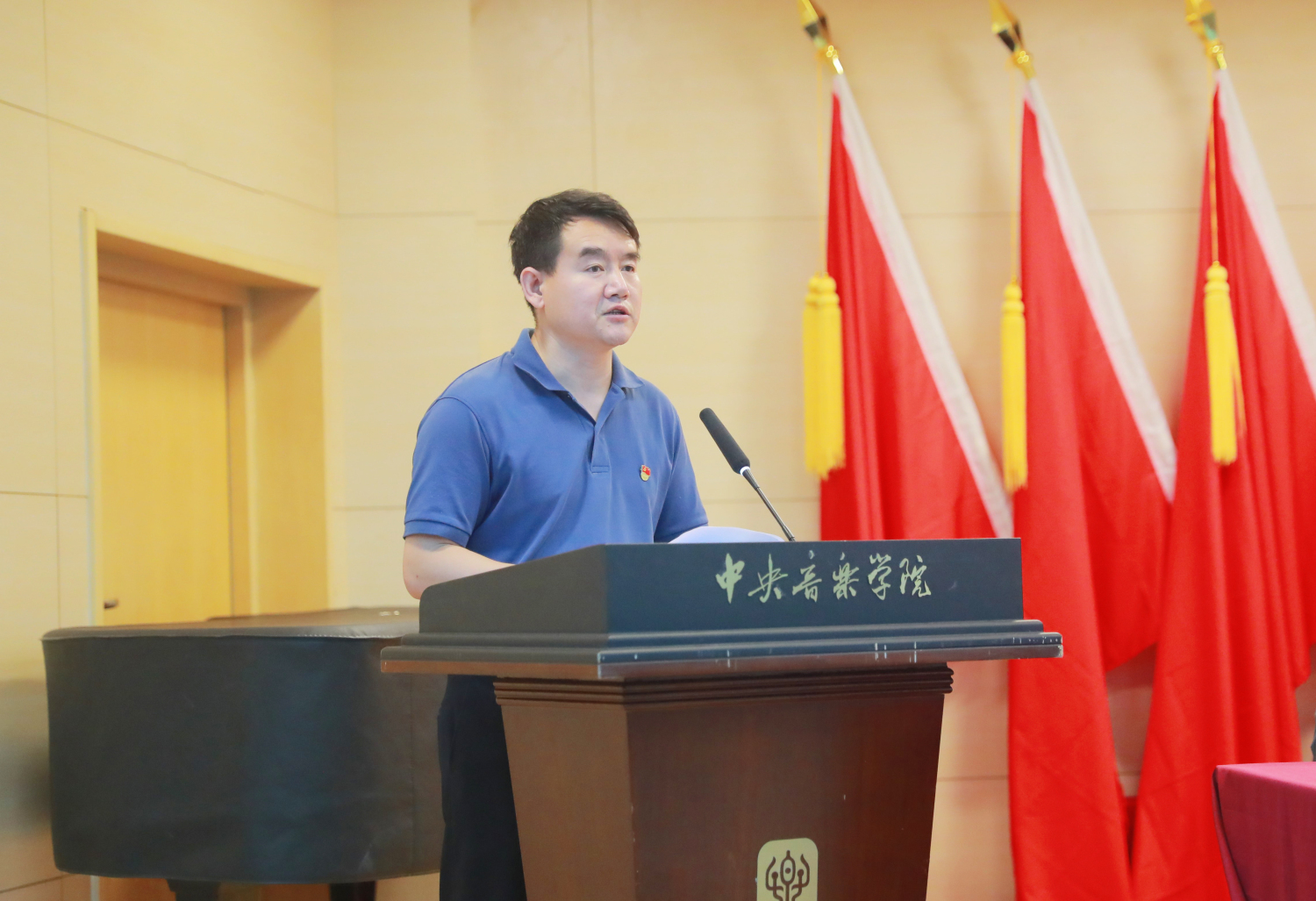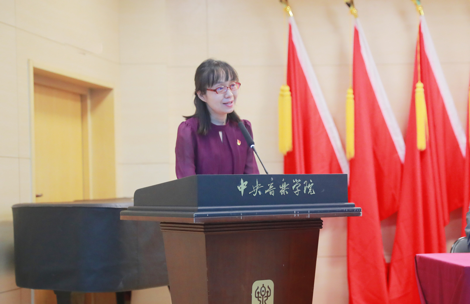 行政机关党总支书记、院长办公室主任兼宣传部副部长王歆从“政治性强、时代性强、人民性强、务实性强”四个角度,对北京市第十三次党代会报告的内容进行了思考和交流,并结合自身工作,回顾了学校近几年如何生动践行“为人民服务”、贯彻党的教育方针和文艺方针的举措,以及全校上下一心抗击疫情的难忘经历。