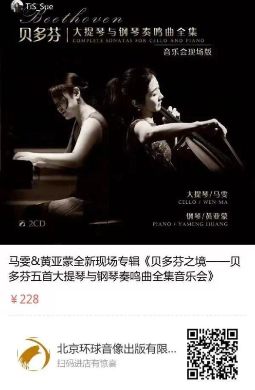 马雯&黄亚蒙全新音乐会现场专辑《贝多芬大提琴与钢琴奏鸣曲全集》已上线北京环球音像出版有限公司微店,欢迎大家长按二维码跳转选购!