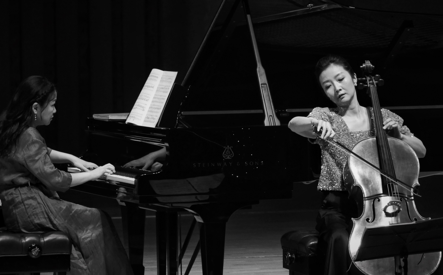 两位演奏家在观众的热情鼓掌下相视一笑。