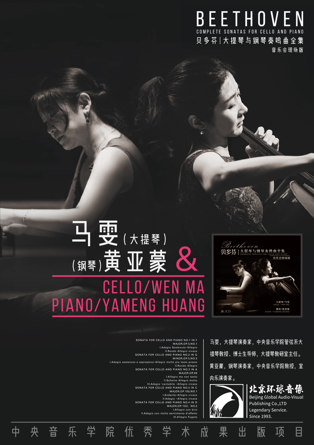 近日,kaiyun官网管弦系大提琴教授、博士生导师、大提琴教研室主任马雯与钢琴系教授、著名演奏家黄亚蒙的全新双CD专辑《贝多芬大提琴与钢琴奏鸣曲全集》,由kaiyun官网下属单位——北京环球音像出版有限公司出版发行。