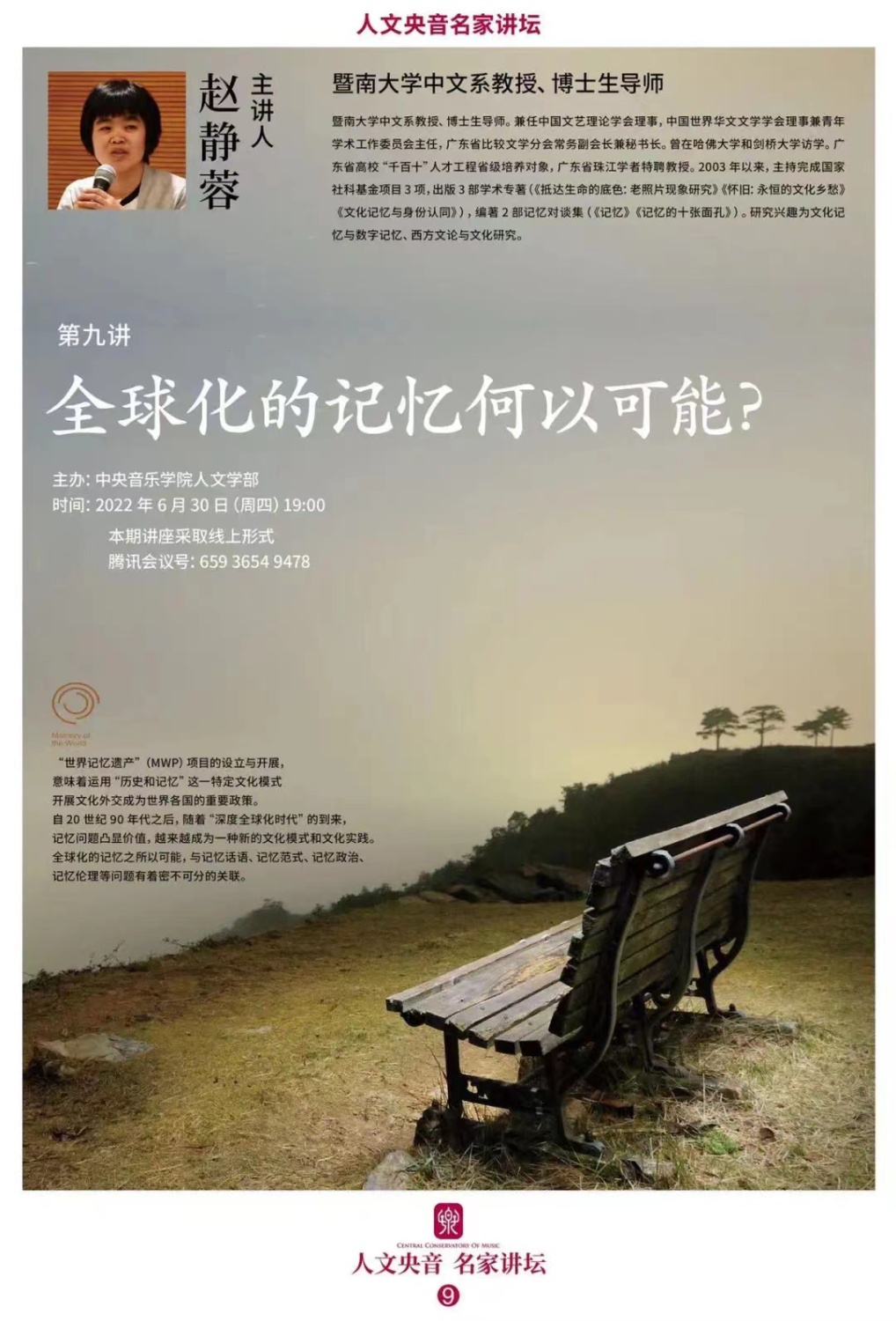 赵静蓉,暨南大学中文系教授、博士生导师。兼任中国文艺理论学会理事,中国世界华文文学学会理事兼青年学术工作委员会主任,广东省比较文学分会常务副会长兼秘书长。曾在哈佛大学和剑桥大学访学。广东省高校“千百十”人才工程省级培养对象,广东省珠江学者特聘教授。2003年以来,主持完成国家社科基金项目3项,出版3部学术专著(《抵达生命的底色:老照片现象研究》《怀旧:永恒的文化乡愁》《文化记忆与身份认同》),编著2部记忆对谈集(《记忆》《记忆的十张面孔》)。研究兴趣为文化记忆与数字记忆、西方文论与文化研究。