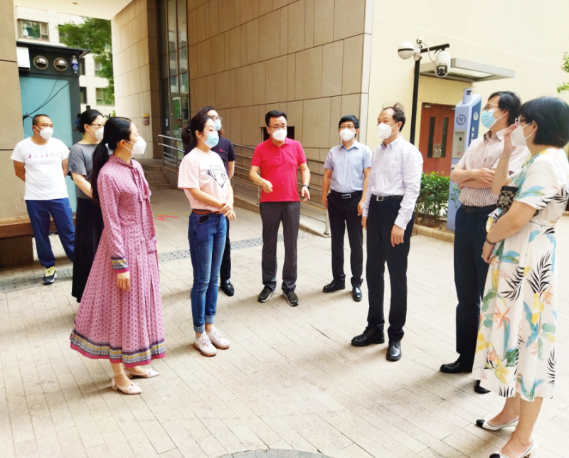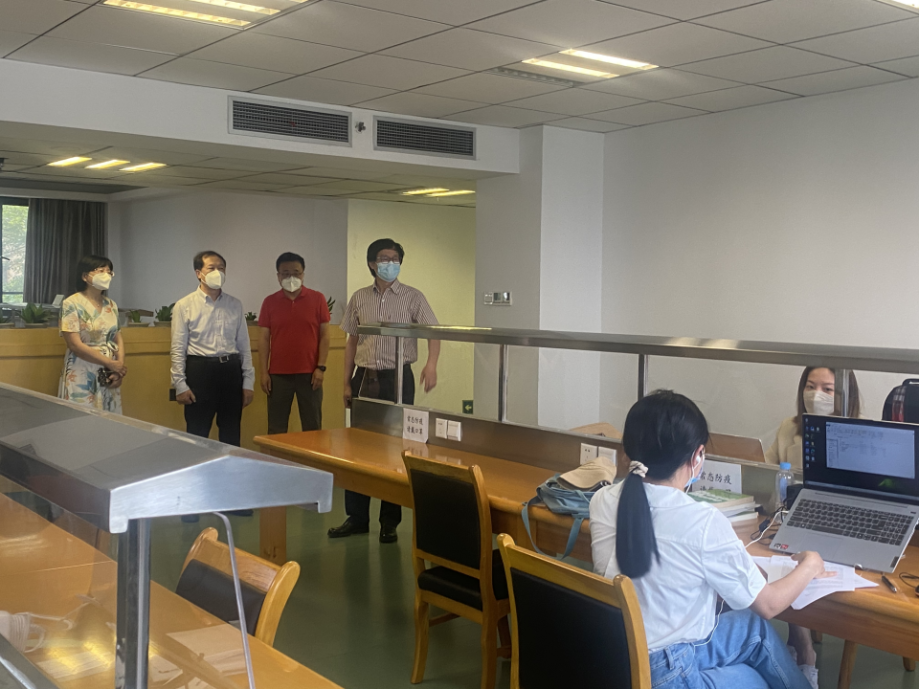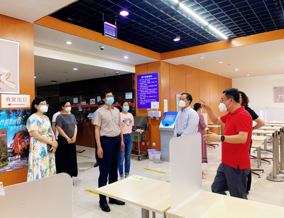 在图书馆,校领导与同学们亲切交流,逐一询问同学们院系与专业,关心同学们的学习、生活情况,叮嘱他们做好疫情防护,平安顺利度过端午假期。在基本伙食堂,查看了食堂环境及储备情况,并叮嘱相关负责人,一定要保证食品安全,同时要降低菜品价格并充实物资储备,让学生在学校安心、让家长放心。在近邻宝,详细了解了快递消杀、静置、入门等流程,强调要严格按照上级有关防疫要求进行消杀卸货,要保持高度警惕,确保校园安全。走访期间,校领导还对学校古建区用电安全、校园绿化情况进行强调,对住校值班的工作人员表示感谢,希望大家继续努力、共克时艰,坚决筑牢校园疫情防线。