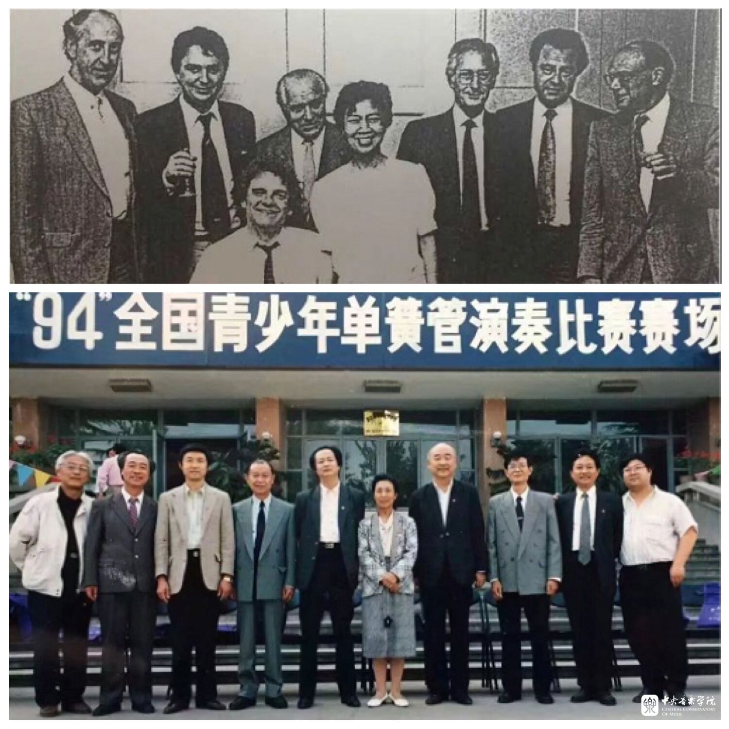 下图:1994年,全国青少年单簧管演奏比赛专家评委合影,赵季平(左5)、陶纯孝(右5)、刘大冬(右4)