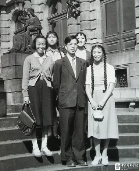 20世纪50年代,留学捷克布拉格音乐学院时与同学合影(第二排左1为陶纯孝)