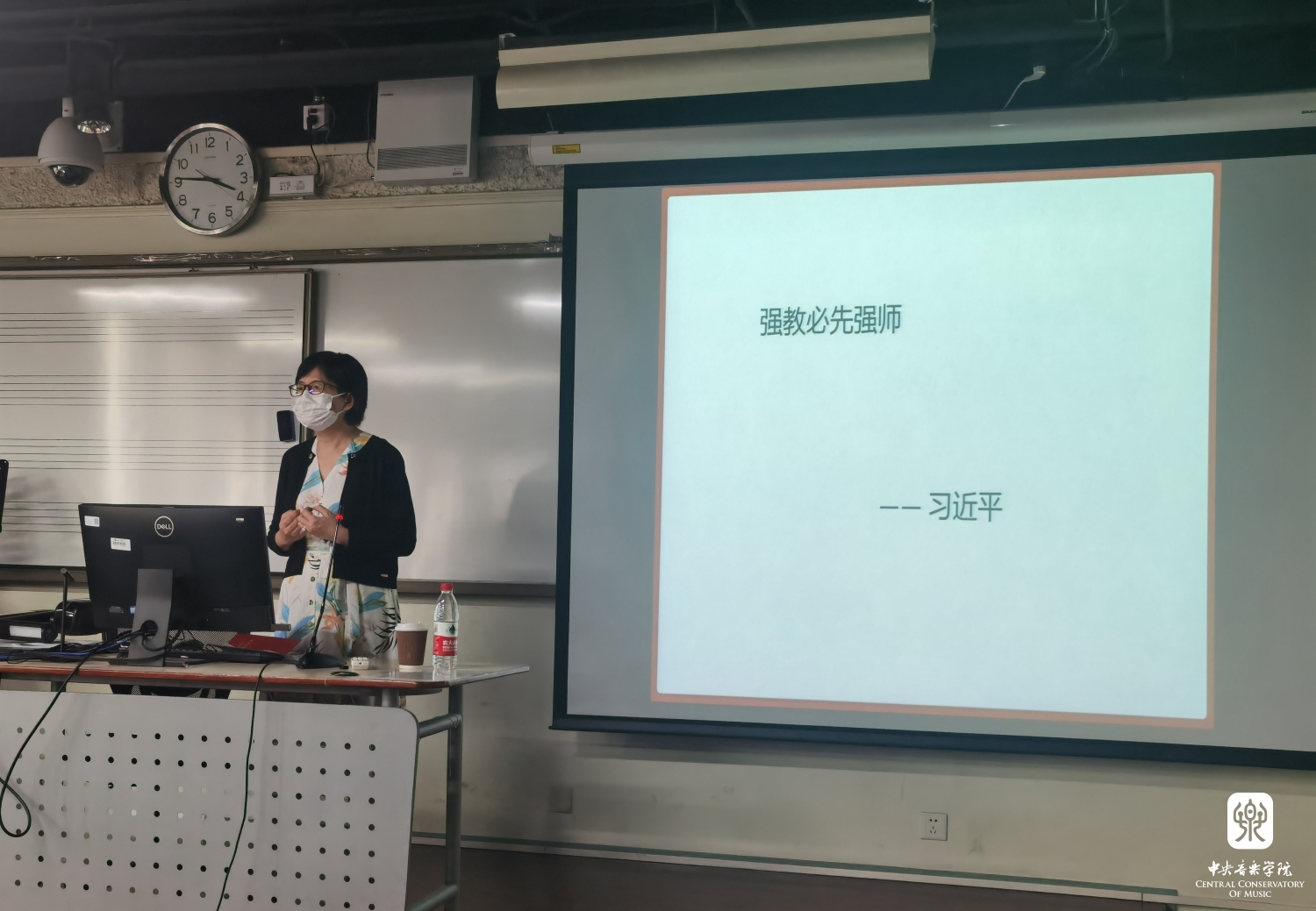 30日下午,人文学部主任何宽钊教授主讲了“建设人文央音在路上”讲座,以俞峰校长提出的“让文化托起艺术,让人文涵养音乐”为核心导向,通过列举各级学生代表在德智体美劳全面发展中所取得的优异成绩,充分展现了学校对“人文央音”的理念从提出建设到深入推进的发展过程。他富有自豪感和幸福感的演讲,让在座的教职工无不深深动容。