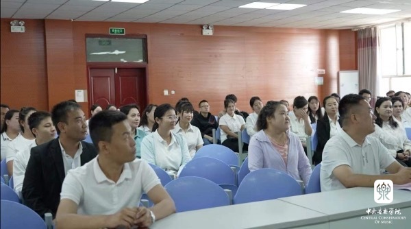 9月8日开班仪式上,张征勉励老师们抓住机会学、带着思考学、结合工作学,确保学有所获。姚瑶副教授围绕素质型音乐教育对全县68名小学音乐骨干教师开展了专题讲座。通过课例实践,让老师们了解了在新课标下如何创新音乐教学、如何引导学生学习、怎样让学生主动学习。整场讲座内容丰富,形式新颖,互动热烈,课堂上时而传出高亢的歌声,时而爆发出热烈的掌声。面对面的讲解让参训教师通过“听看结合”的直观方式,近距离聆听专家的指导,大家很受启发。