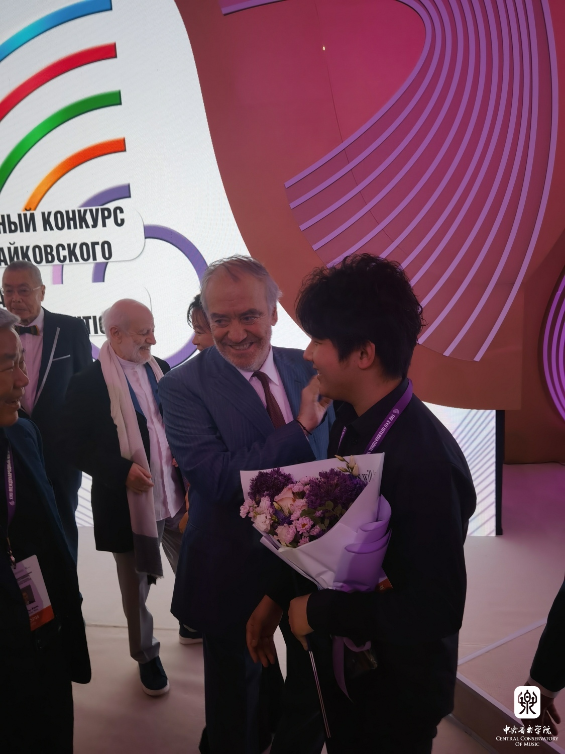 “这次在柴可夫斯基国际音乐比赛小提琴组中获得第四名的成绩,我感到非常激动与自豪!柴赛可以说是音乐界的奥运会,是音乐圈的顶级赛事!可想而知,它的曲目分量也是相当大和重的,而不太幸运的是很多曲目我以前并没有拉过,巴赫赋格以及庞大的柴可夫斯基小提琴协奏曲,在公布初选名单到正赛极短的时间内,从背谱到展现音乐,对我来说都是极大的挑战!但我极其幸运,学院、管弦系、小提琴教研室都给予我们最大支持!俞院长赛前在动员会上振奋人心的讲话几乎使我们每一位选手深受鼓舞,热血澎湃地想要在柴赛舞台上一展我们中国人的风采!系里和教研室提供了多次让我们赛前走台的机会,每一次走台都是一次宝贵的经历,让我们攒够经验再在柴赛上享受舞台!同时,我的主科老师张提教授和钢琴艺术指导老师吴琼副教授在赛前每天都在帮助我练琴、走台,细致到每个音的音准、音色!张老师还在有着时差的情况下,在我比赛期间视频听我练琴、上课,并且由于我有腱鞘炎,比赛期间左手感到不适,无法练习太多,于是张老师不仅给我细致地讲每个音,还拿起琴示范几乎一整首协奏曲,我深受感动和鼓舞!在莫斯科每一轮在音乐厅走台的录像张老师都会细细地从头到尾给我讲一遍我的所有问题,并帮助我将其解决。张老师在比赛心理心态上也对我有着极大的影响与帮助,赛前的鼓励与肯定,使我可以更加自信地站在柴赛的舞台!吴老师更是不辞辛苦地陪我一起去莫斯科为我弹前两轮的比赛,在比赛场地走台时帮助我听演奏与音乐厅声音之间的关系,不断录音、看谱子找问题并改正!吴老师不仅在比赛上给予最大支持与帮助,还在生活上对我们学校的四位学生非常照顾,是我们的坚实后盾!