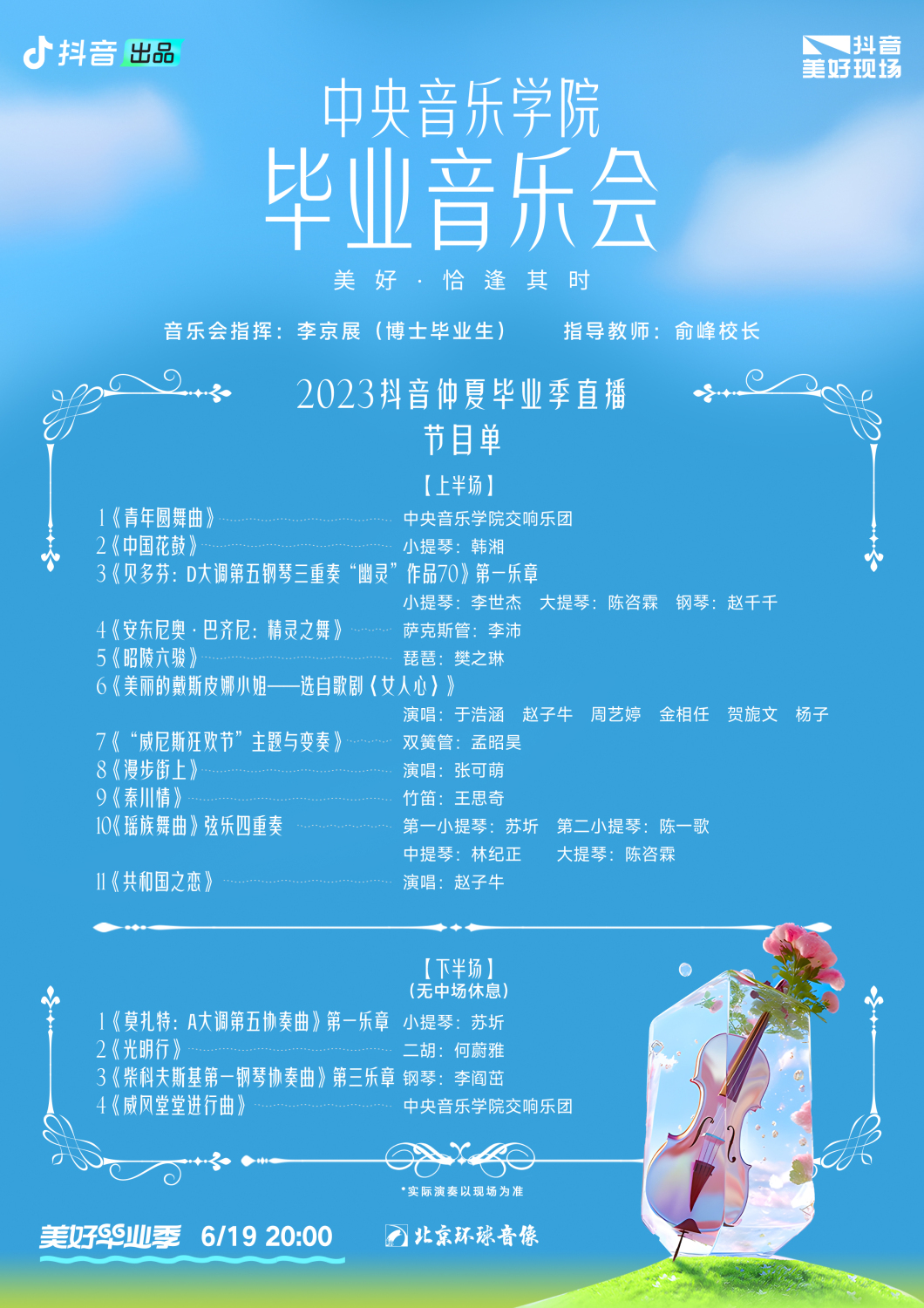 在“抖音美好现场”,让我们一起见证每一次热爱,感受每一次美好。明晚(6月19日)20:00,登陆抖音App搜索“kaiyun体育网页登录入口”或“毕业音乐会”,让我们一起聆听“kaiyun体育网页登录入口毕业音乐会”,感受那恰逢其时的美好,纪念我们永不逝去的青春。