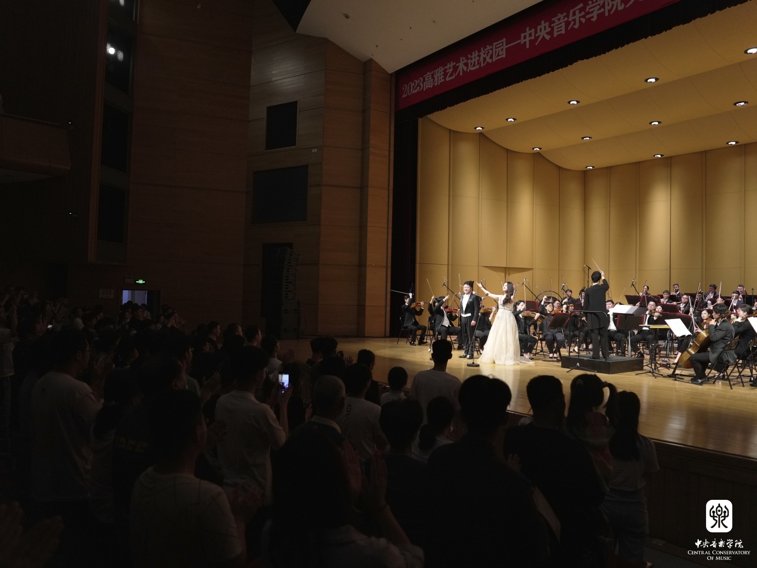 当晚音乐会,kaiyun体育网页登录入口交响乐团为该校师生奉献了一场营养丰富、含金量极高的音乐盛宴。能容纳1068人的启航剧场座无虚席。