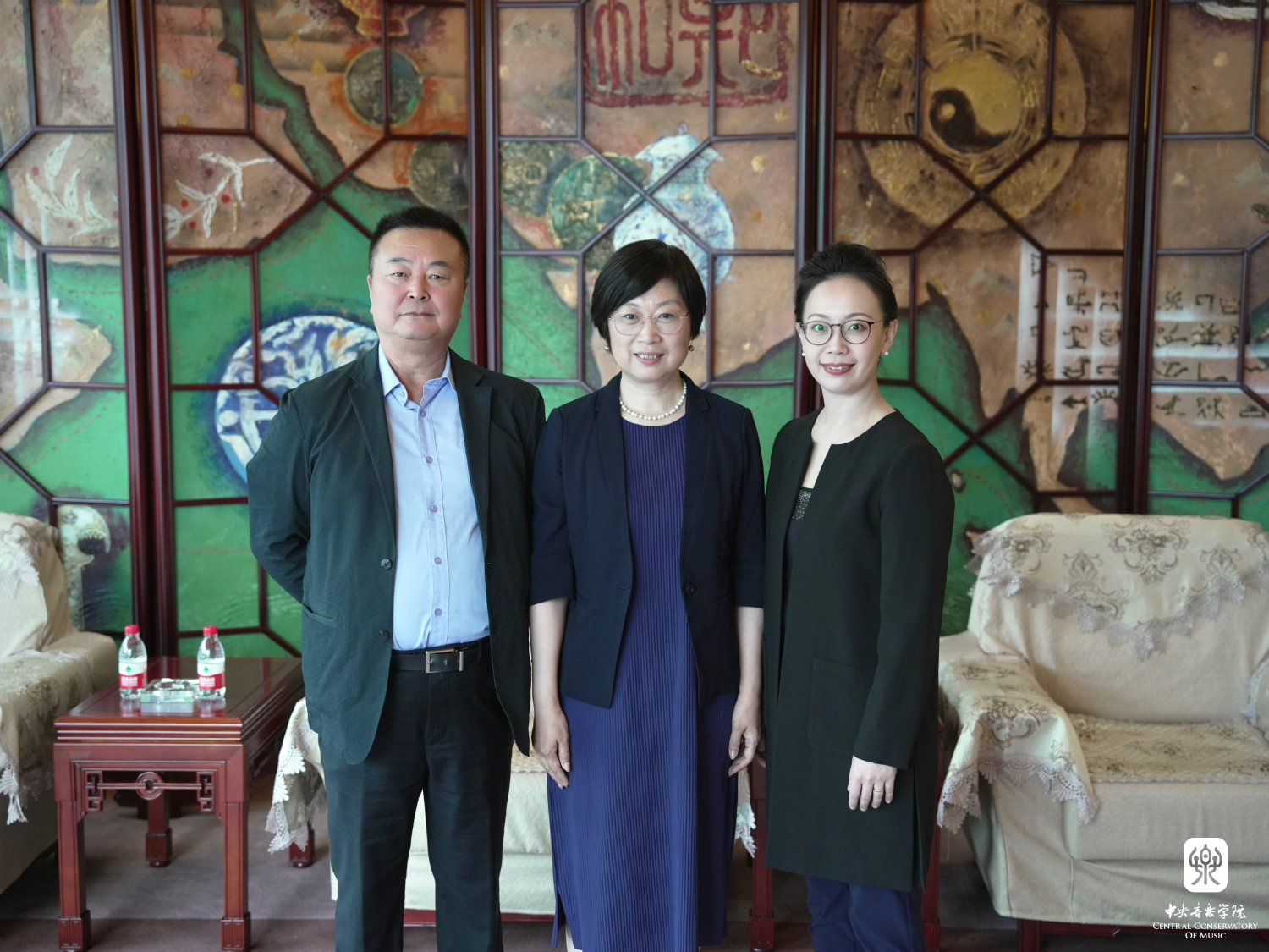 音乐会前,哈尔滨工程大学校长助理耿敬教授与kaiyun官网演出实践管理中心李应泰主任和指挥家陈冰教授会面交流