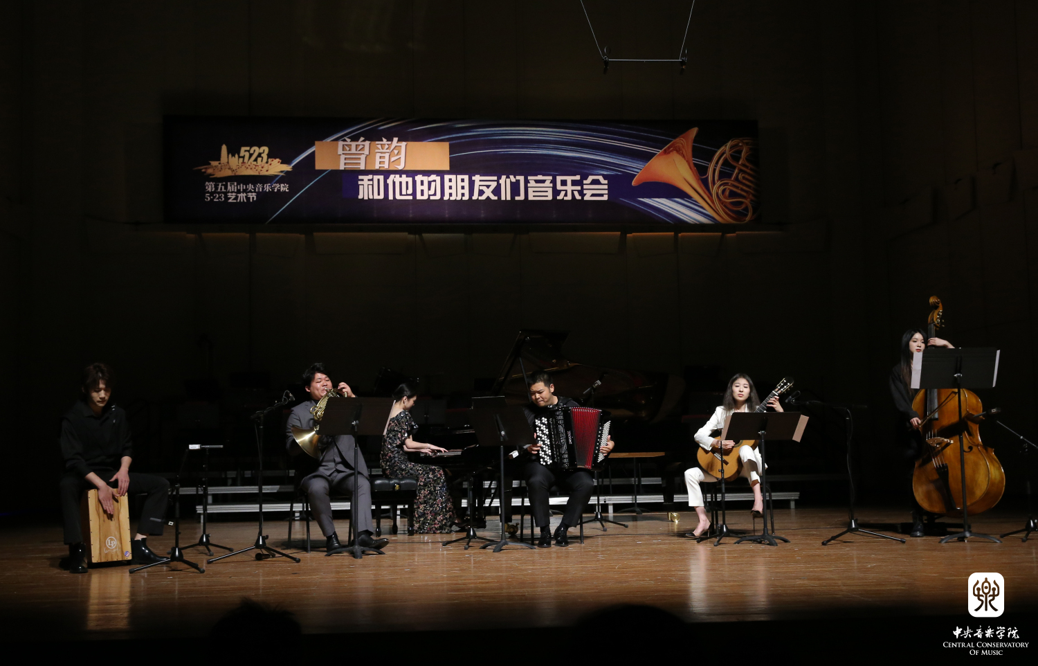 中西、古今乐器的融合,传统与现代的交相辉映,古典、爵士等多样的音乐风格,老、中、青三代艺术家琴瑟和鸣的美妙场面,赋予了整场音乐会“时空交叠”的体验,展现了新生代年轻音乐家的即兴才能与“融合”、“跨界”的风格。音乐会上,曾韵和他的朋友们带领听众聆听了古今中西大师书写的华章,开启了一场穿越不同时空的音乐旅行,他的风趣幽默也给现场带来了足够的快乐。