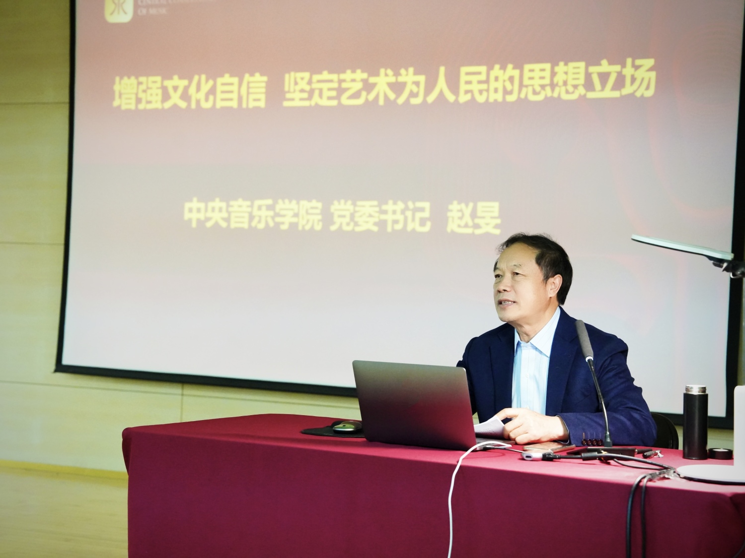 随后,赵旻书记围绕党的二十大报告中关于“推进文化自信自强,铸就社会主义文化新辉煌”部分,以《增强文化自信 坚定艺术为人民的思想立场》为主题,从四个方面为师生讲授“开学第一课”。