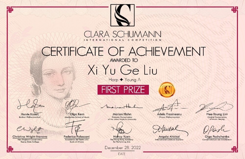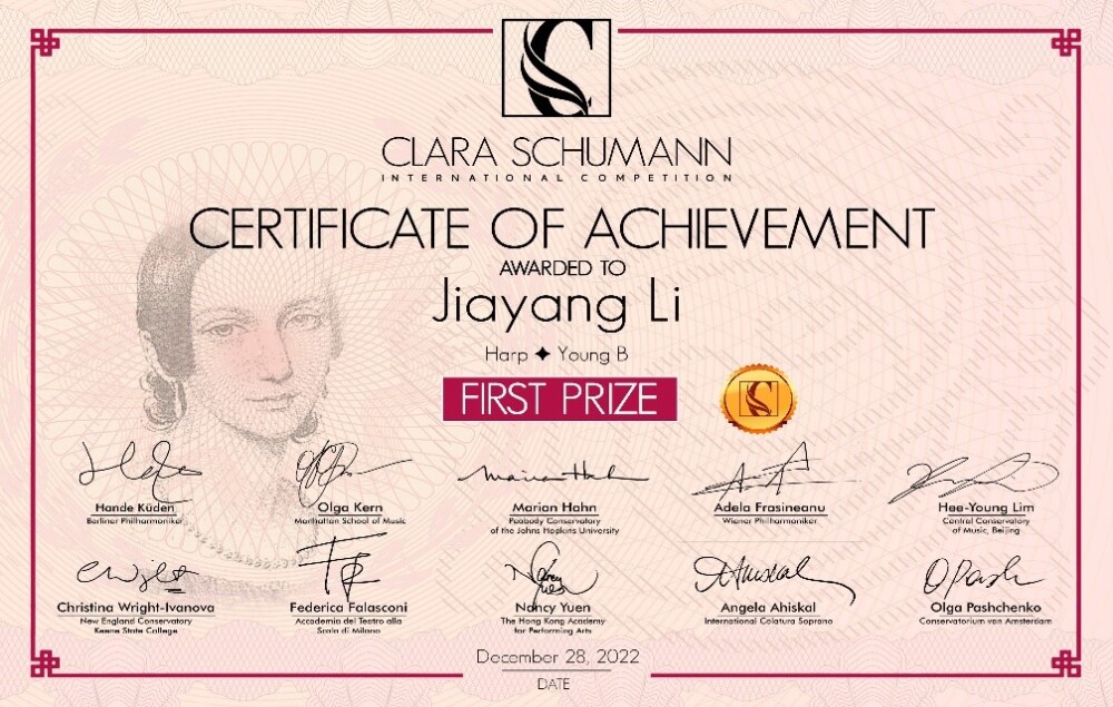 在刚刚落幕的2022“克拉拉·舒曼国际音乐比赛”(2022 Clara Schumann International Competition)中,经过激烈的角逐,kaiyun官网附小四年级学生刘熙语格以优异的成绩荣获竖琴少年A组一等奖;附中初一年级学生虞涵匀获得竖琴少年B组一等奖; 初二年级学生李佳阳获得竖琴少年B组一等奖,指导教师:王冠教授。