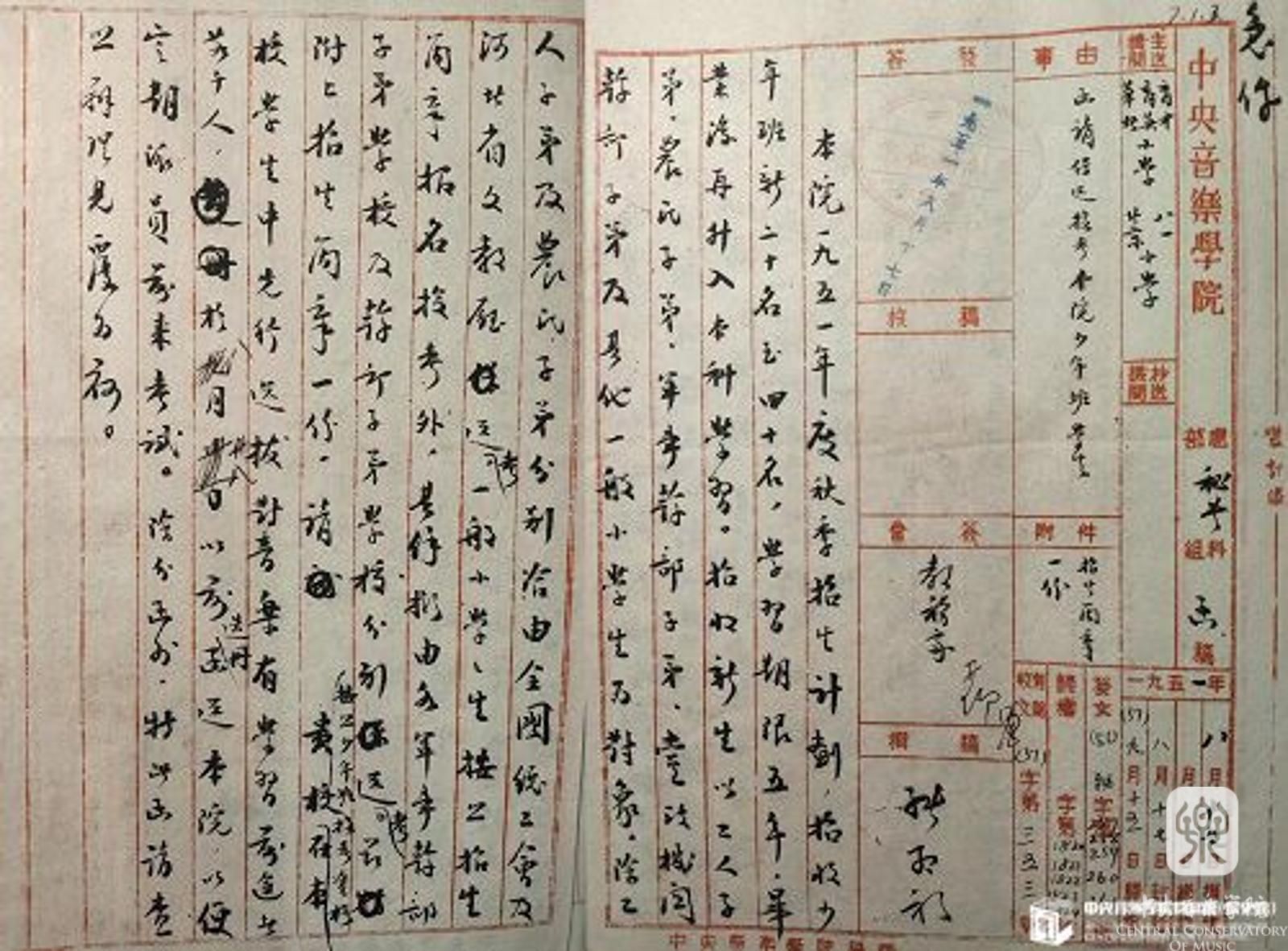 细细品读一张张泛黄的历史档案,不禁为70多年前“央音”的开拓者和建设者们赞赏有加。他们的办学思路之清晰,行政决策之果断,工作开展之有序,都是后辈们学习的榜样。同时,笔者也为当时的文化部、教育部领导实事求是、严谨高效的工作作风,深感敬佩。正是由于获批单独组织招生,学校才能揽天下英才以育之。而“央音”1951级本科和少年班学生,大都已成为新中国音乐事业的栋梁之材。