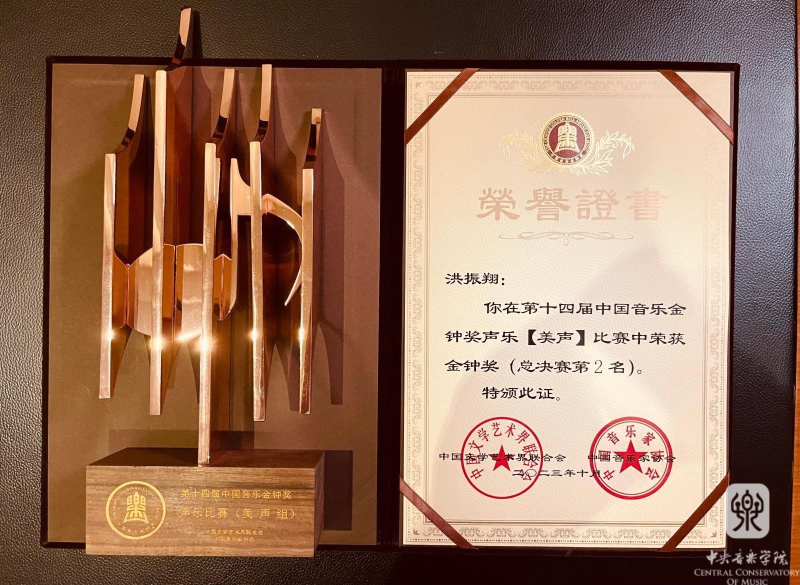“十年前种下的梦想种子,今天终于长出来了芽。”这是洪振翔以第二名成功敲响金钟后写在朋友圈的一句话,锲而不舍,终如愿以偿。“今年第十四届中国音乐金钟奖是第十个年头,我参加的第一届是13年,进入复赛,然后到15年进入半决赛,17年进入复赛,19年进入全国赛,但是当时有一部歌剧要演,选择弃赛,2021年我进入决赛并获得第六名,到今年2023年终于敲响金钟。一步一个脚印,我不断提升自己、突破自己,争取得到专家评委还有全国观众朋友们的肯定。”十年经历的回顾,看到了一位初出茅庐的大学生,向着成熟表演者的转变与成长。正是自身的力学笃行、老师的辛勤培养,始终推动着他不断前行、不断向上。
