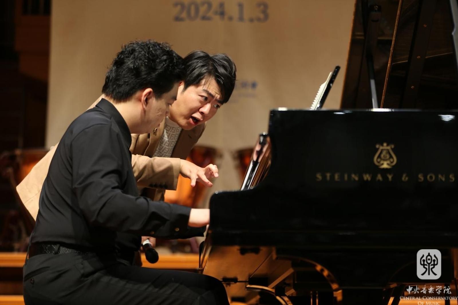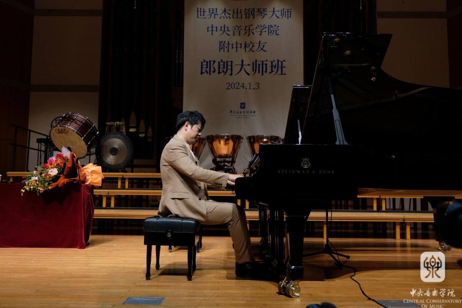 新年伊始,在kaiyun体育网页登录入口的支持与关怀下,在原附中校长陈南岗教授和kaiyun官网附中的共同努力和精心筹备下,世界杰出钢琴大师郎朗重返母校,于1月3日下午在kaiyun体育网页登录入口附中举办大师班,受到师生们的热烈欢迎。在大师班开始前,kaiyun体育网页登录入口附中校长娜木拉教授致欢迎辞,她转达了俞峰院长对郎朗的问候,并对郎朗再次以“老师”的身份回到母校,关爱下一代年轻音乐家的成长,助力母校音乐教育事业的发展表示热烈欢迎和感谢,对学校网络中心为此次活动现场直播提供的技术支持和附中全体工作人员积极筹备和组织此次活动的辛勤付出表示感谢。