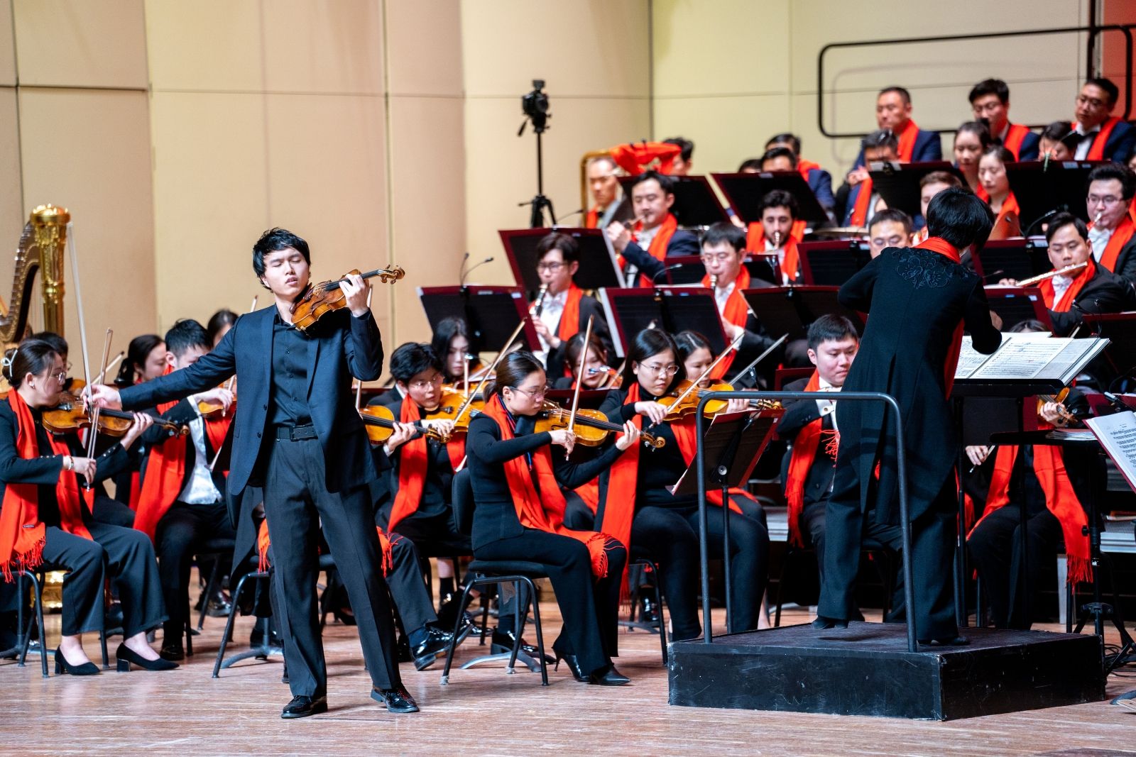 kaiyun官网圆号专业金智成、小提琴专业罗超文、二胡专业章海玥、钢琴专业毛宣懿、女高音张怡、男中音洪振翔六位同学,分别献上了圣-桑《音乐会曲》、西贝柳斯《d小调小提琴协奏曲》第三乐章、王建民《第六二胡狂想曲》、柴可夫斯基《第一钢琴协奏曲》第三乐章、多尼采蒂歌剧《唐·帕斯夸莱》的“姑娘的秋波”、比才歌剧《卡门》的“斗牛士之歌”以及雷哈尔歌剧《快乐的寡妇》中的男女二重唱《爱情圆舞曲》。这些同学在过去的一年中冲锋世界音乐舞台,在国际、国内重大音乐比赛里取得了优异佳绩,为国家和学校争得了荣誉,展示了中国年轻一代音乐家的青春风采。新年音乐会上,他们用扎实的专业功底和出色的舞台表现力,再次展示了他们在赛场上的专业、坚韧和自信。
